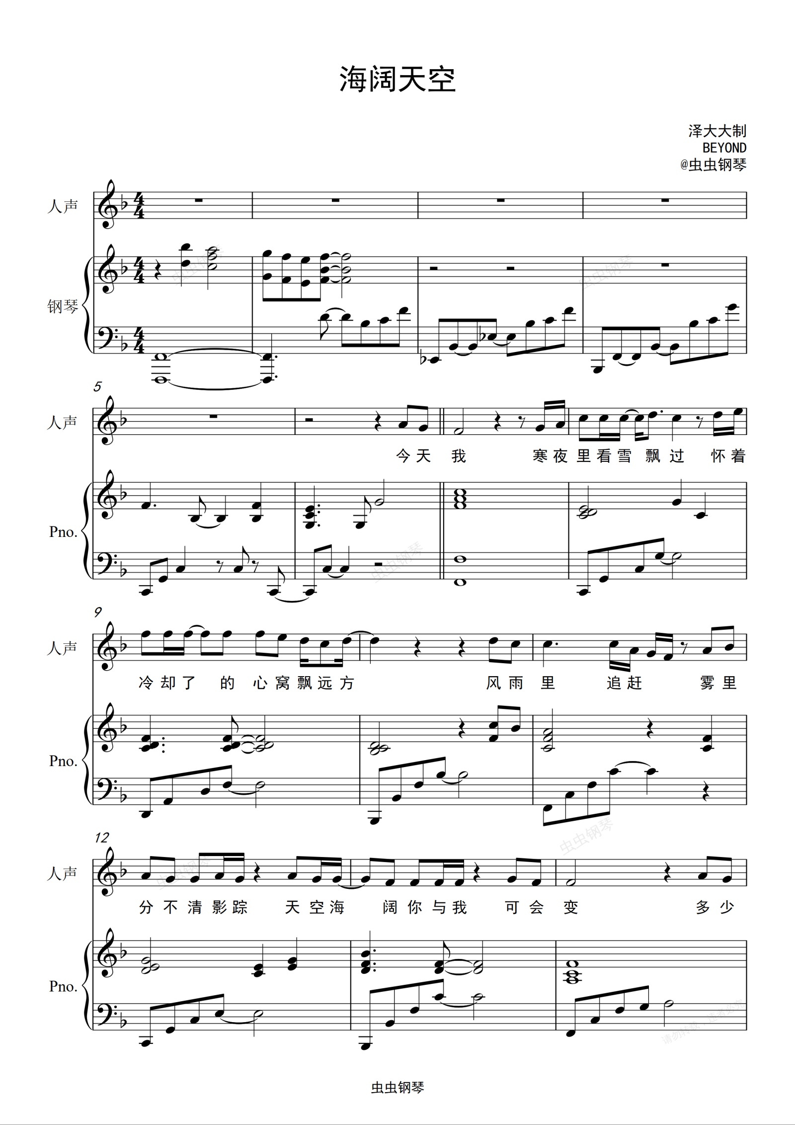 钢琴谱:海阔天空【原版弹唱附词】泽大大 Beyond