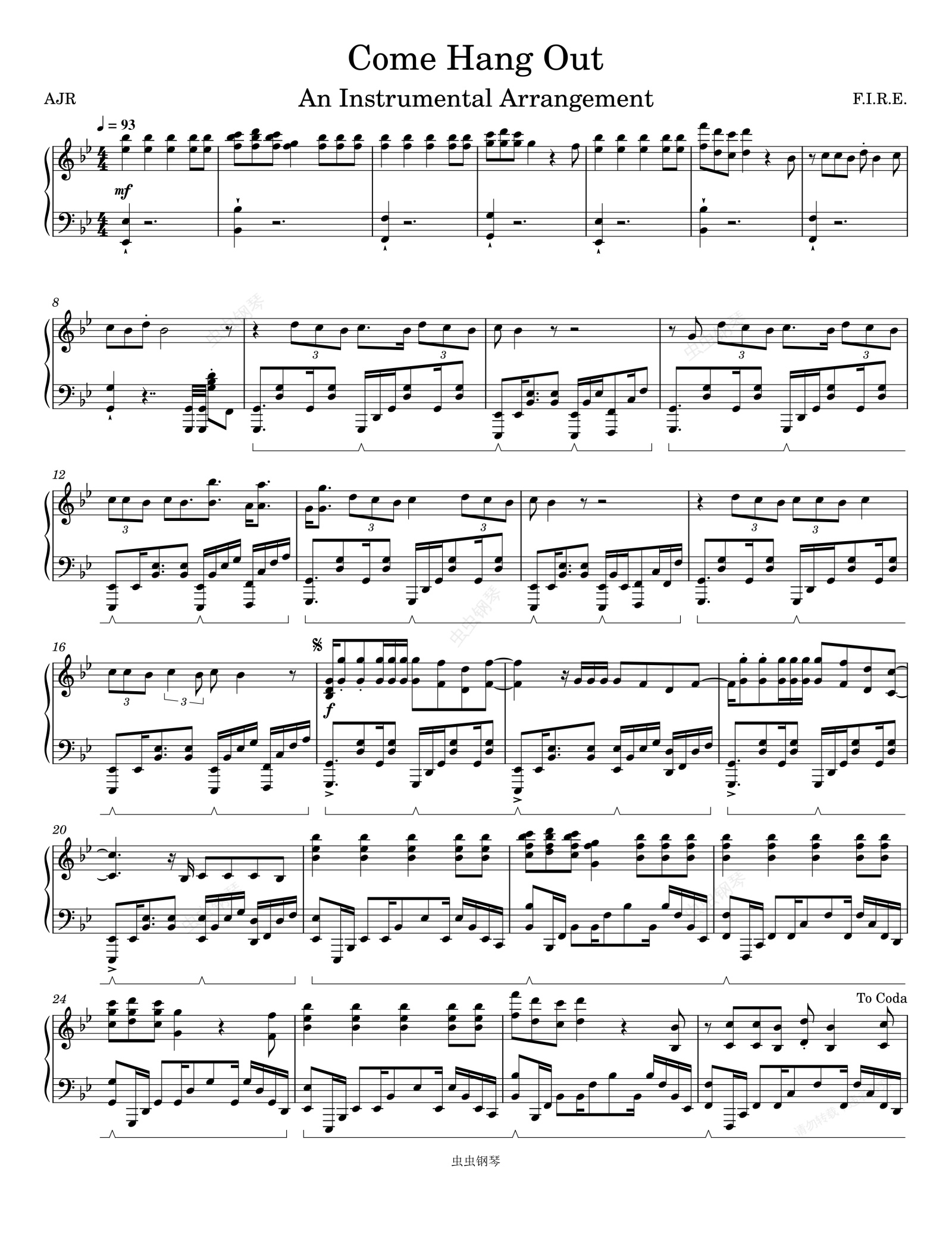 钢琴谱:AJR-Come Hang Out