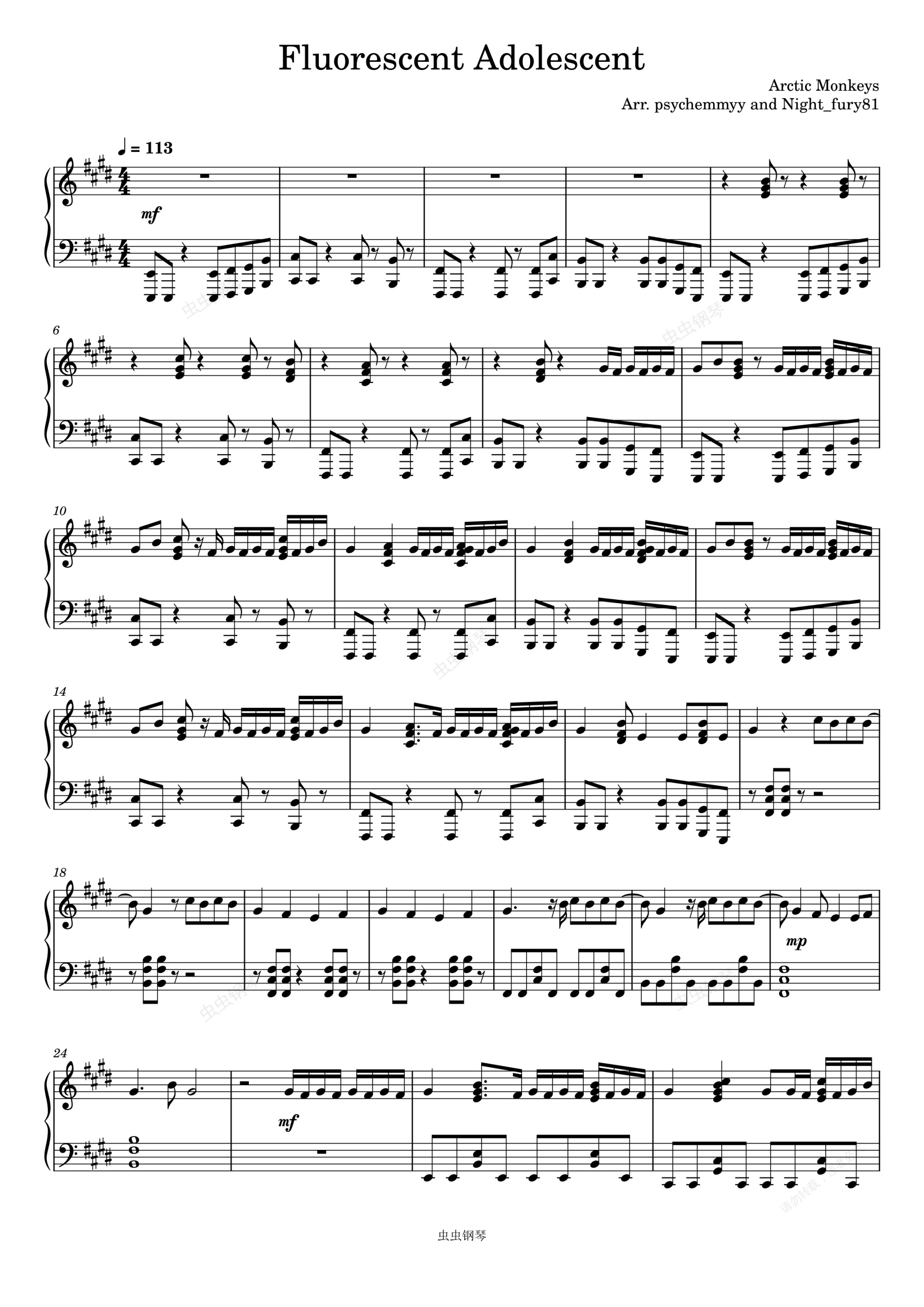 钢琴谱:Fluorescent Adolescent-Arctic Monkeys