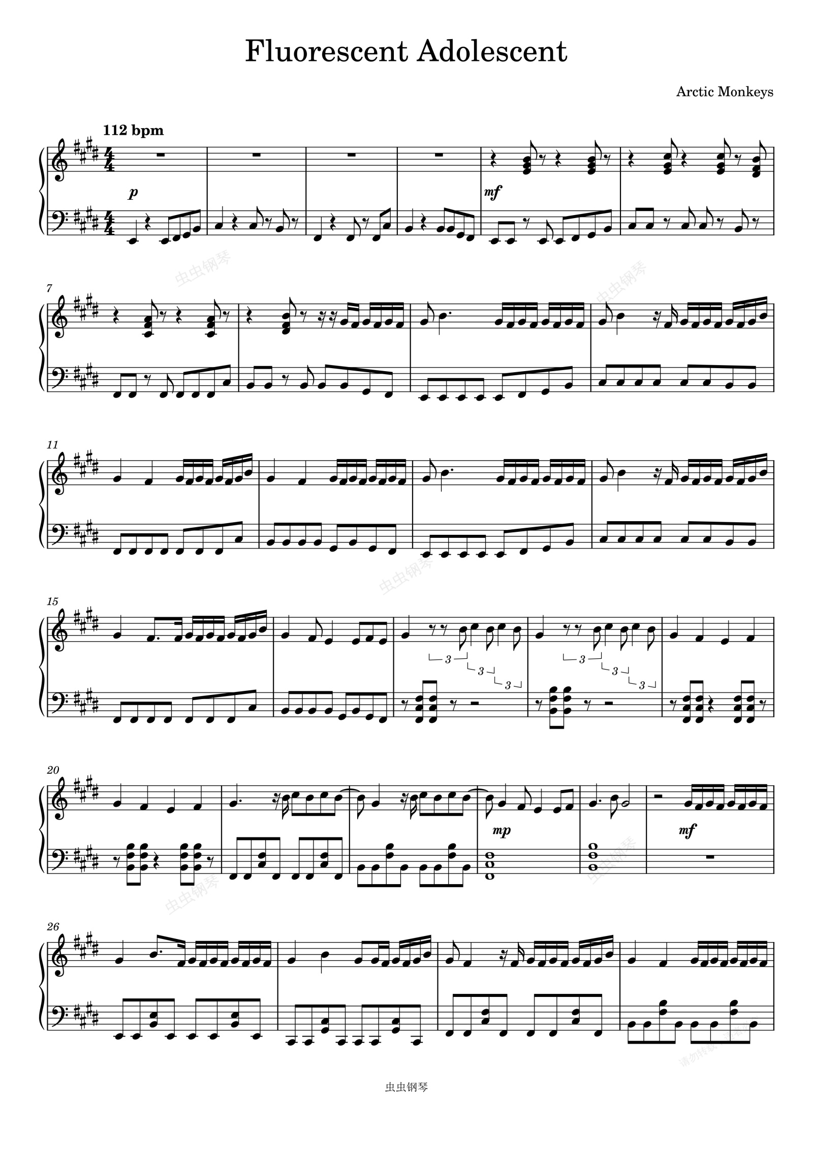 钢琴谱:Fluorescent Adolescent- Arctic Monkeys