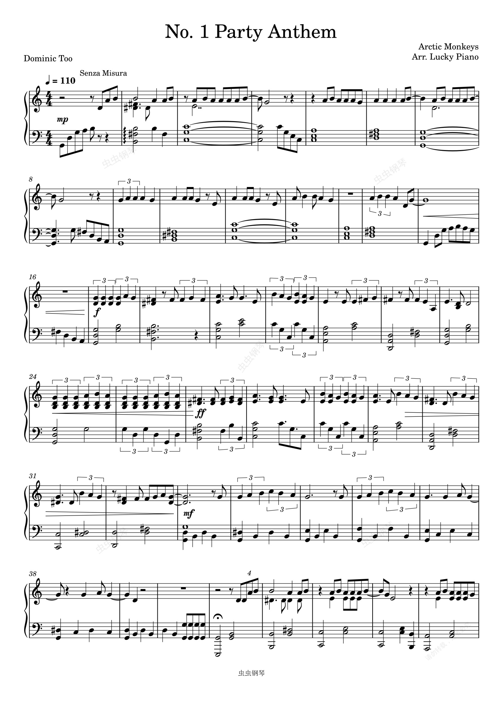 钢琴谱:No. 1 Party Anthem-Arctic Monkeys