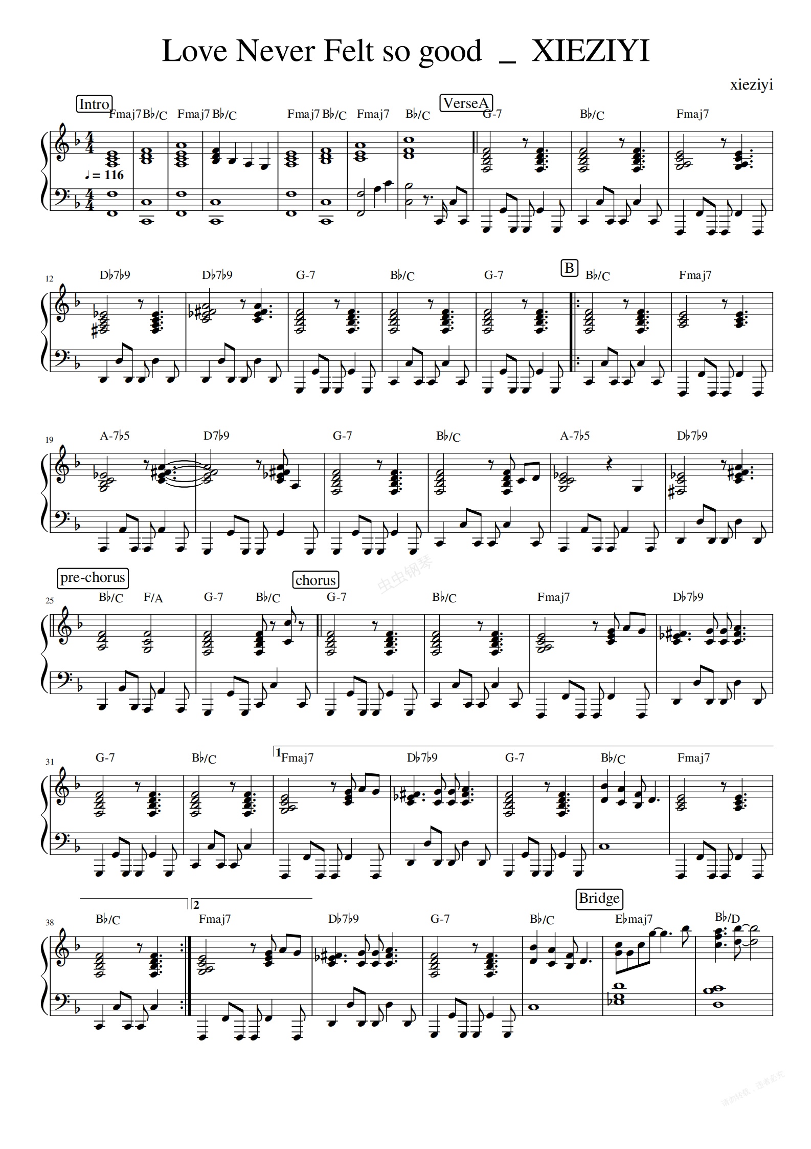钢琴谱:love never felt so good迈克杰克逊钢琴伴奏