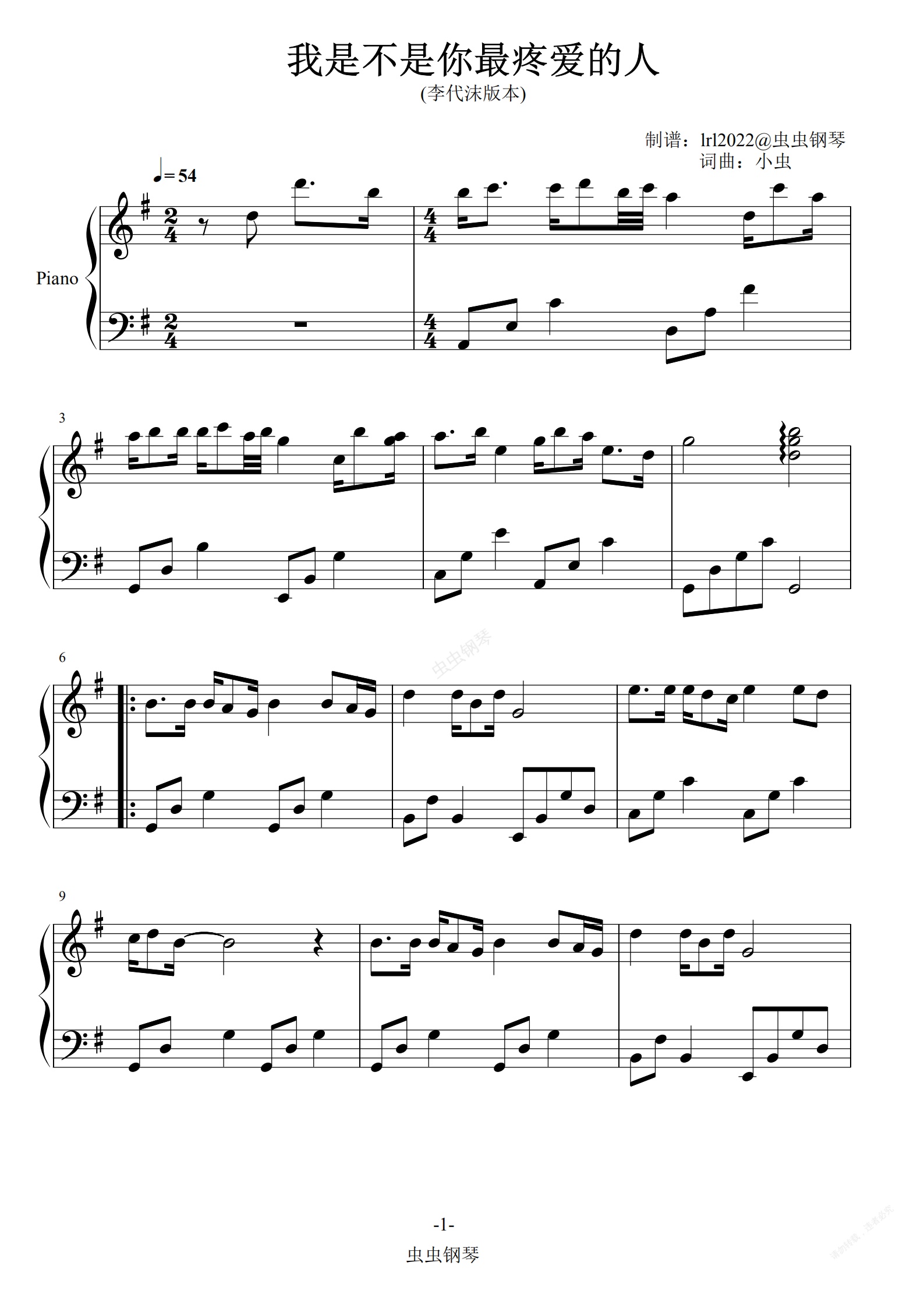 钢琴谱:我是不是你最疼爱的人-李代沫-独奏版-钢琴谱