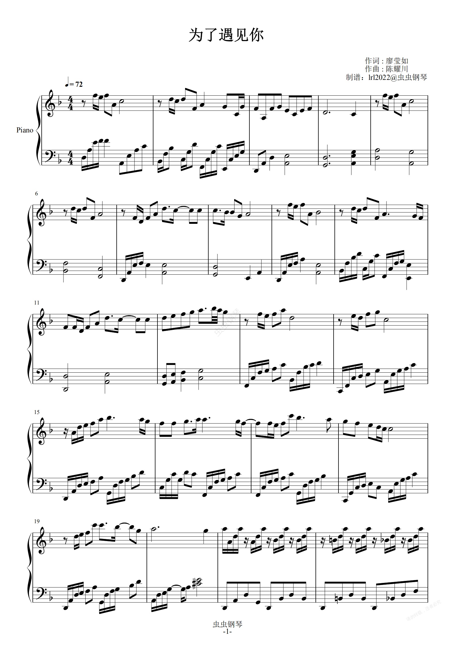 钢琴谱:为了遇见你-薛之谦-独奏版-钢琴谱