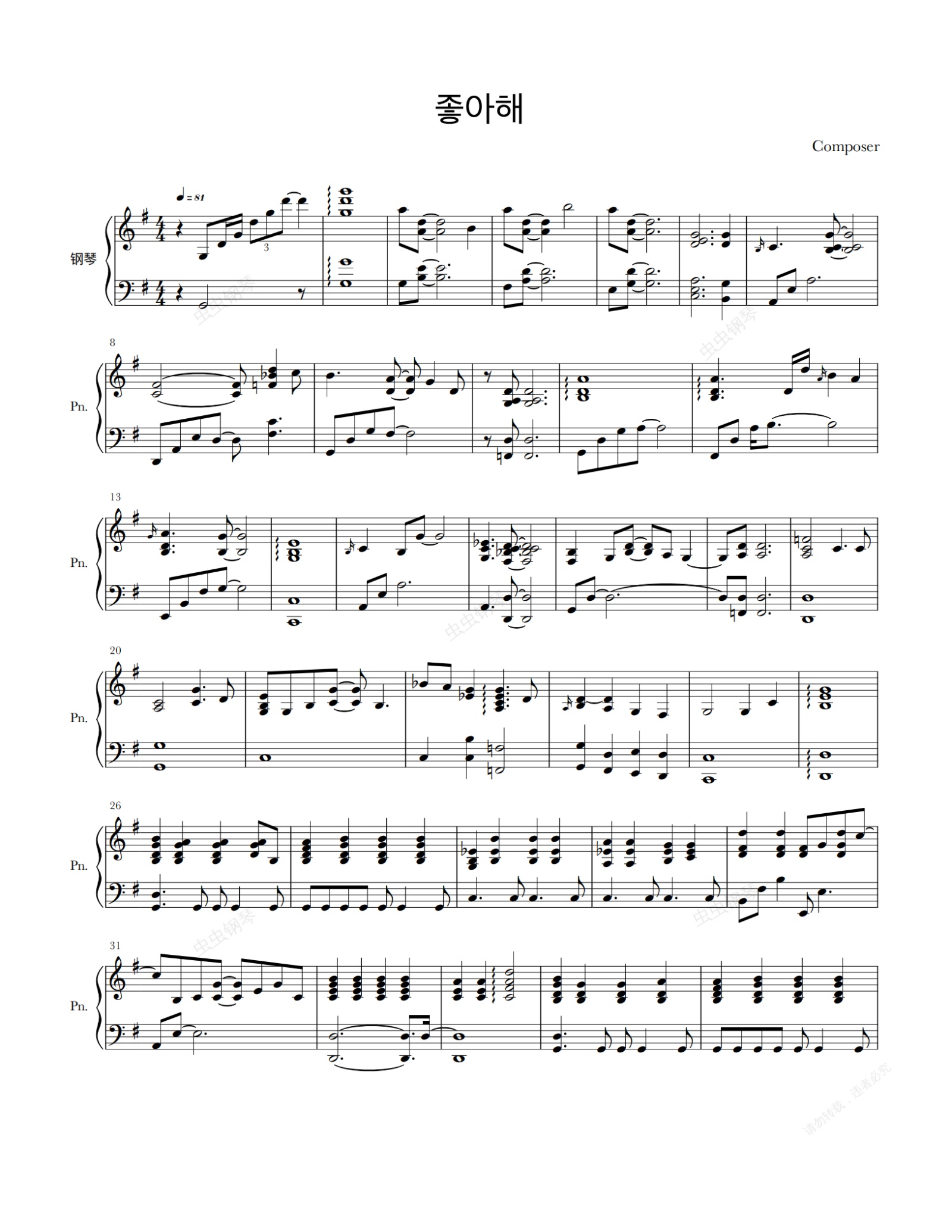 钢琴谱:좋아해(bye)(love you (bye))钢琴伴奏编扒