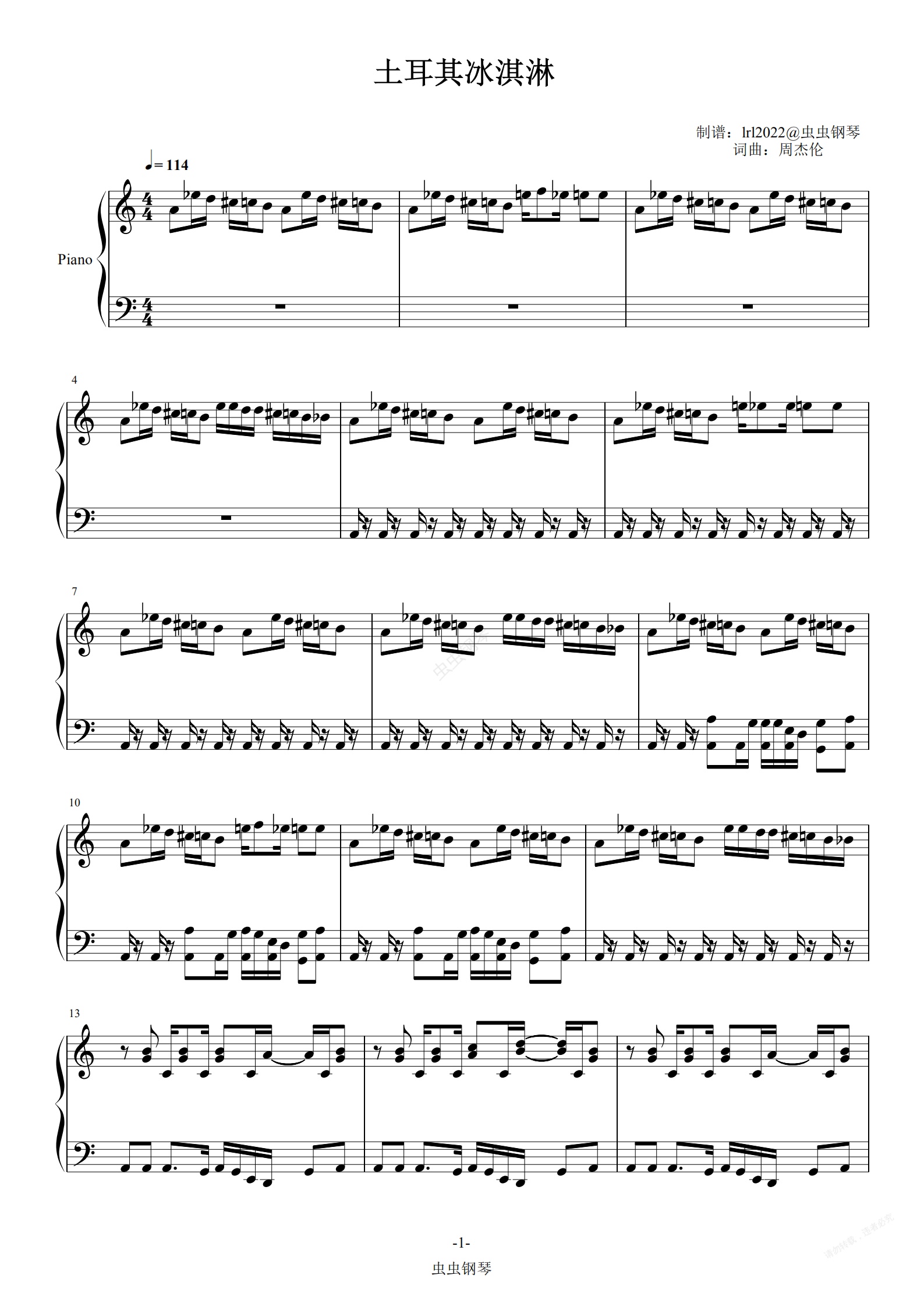 钢琴谱:土耳其冰淇淋-周杰伦-独奏版-钢琴谱