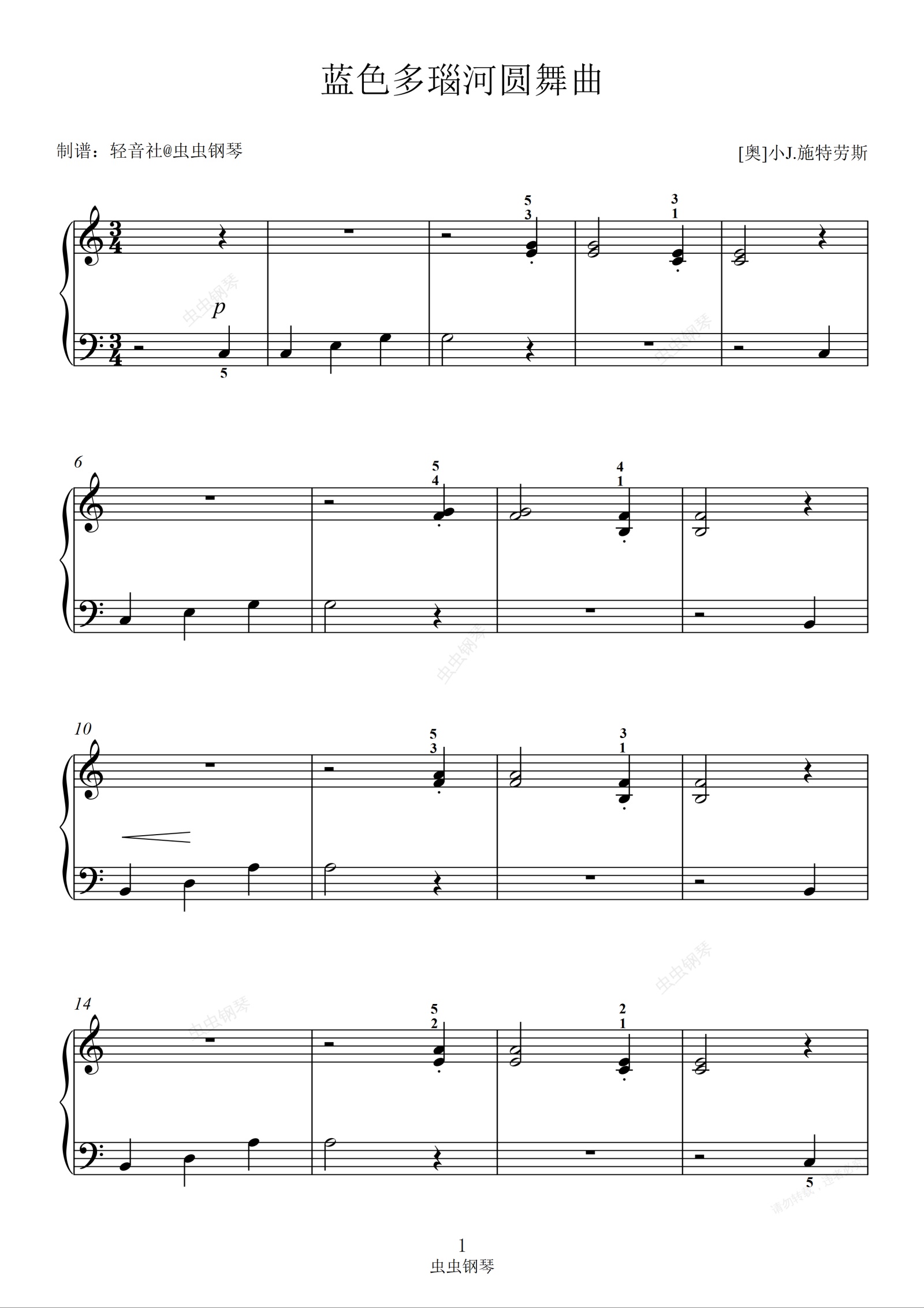 钢琴谱:《蓝色多瑙河圆舞曲》《蓝色多瑙河》经典简单易弹好听儿童初学带指法