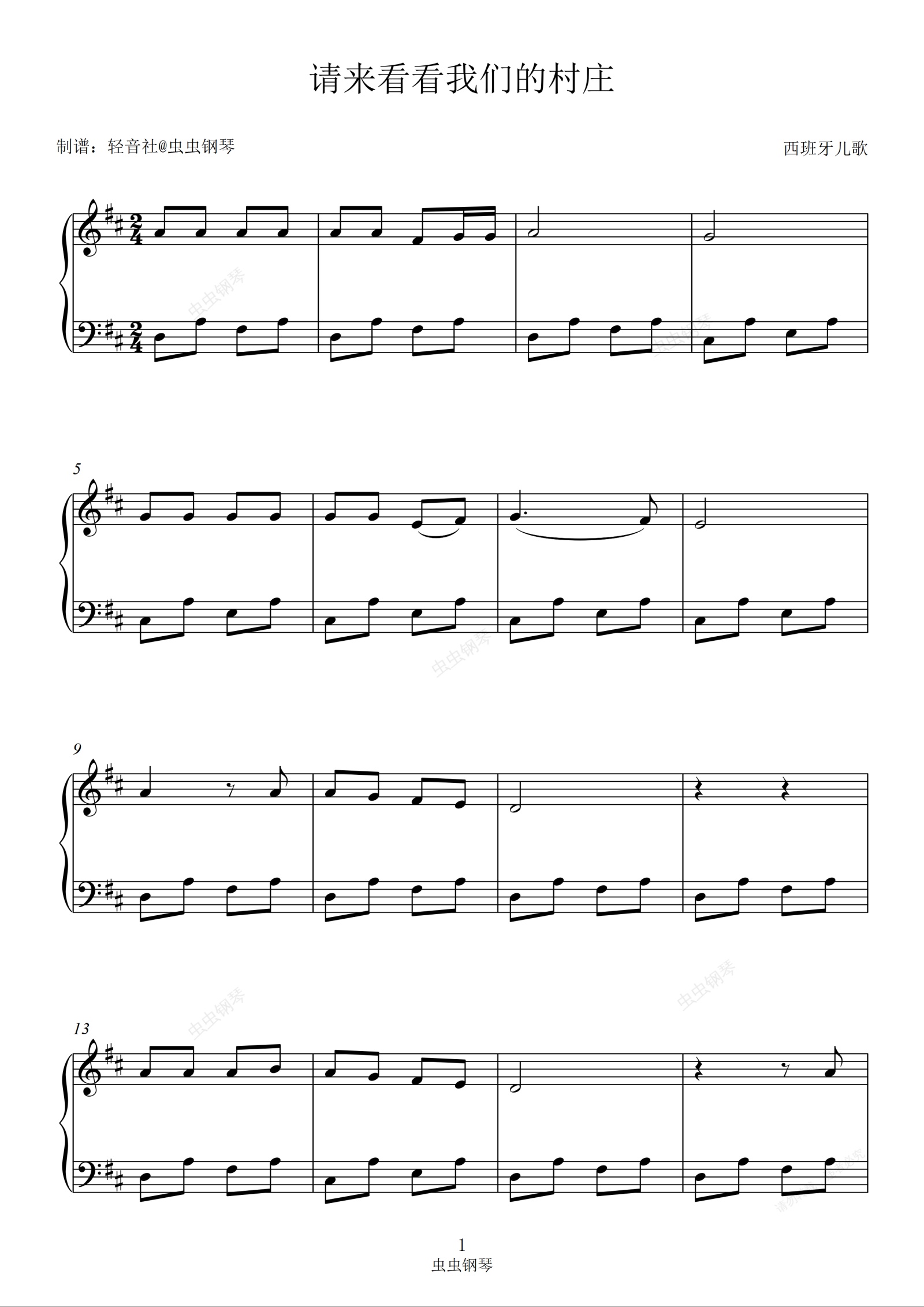 钢琴谱:《请来看看我们的村庄》好听好弹容易儿童初学易弹