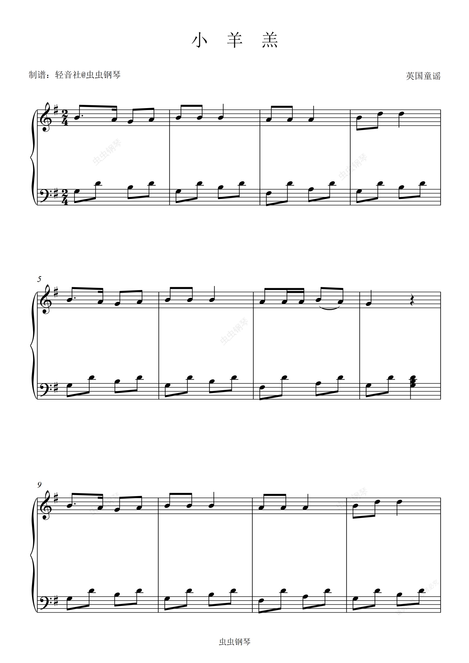 钢琴谱:《小羊羔》简单易弹好听儿童初学好弹