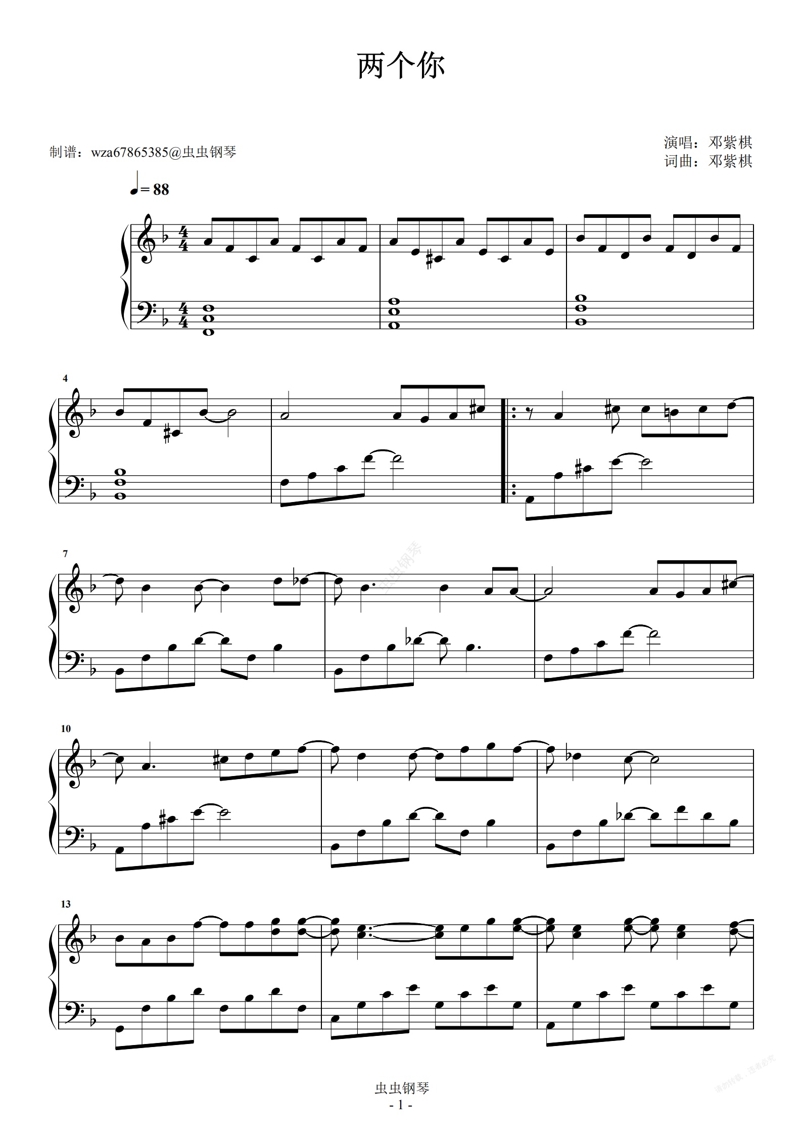 钢琴谱:两个你