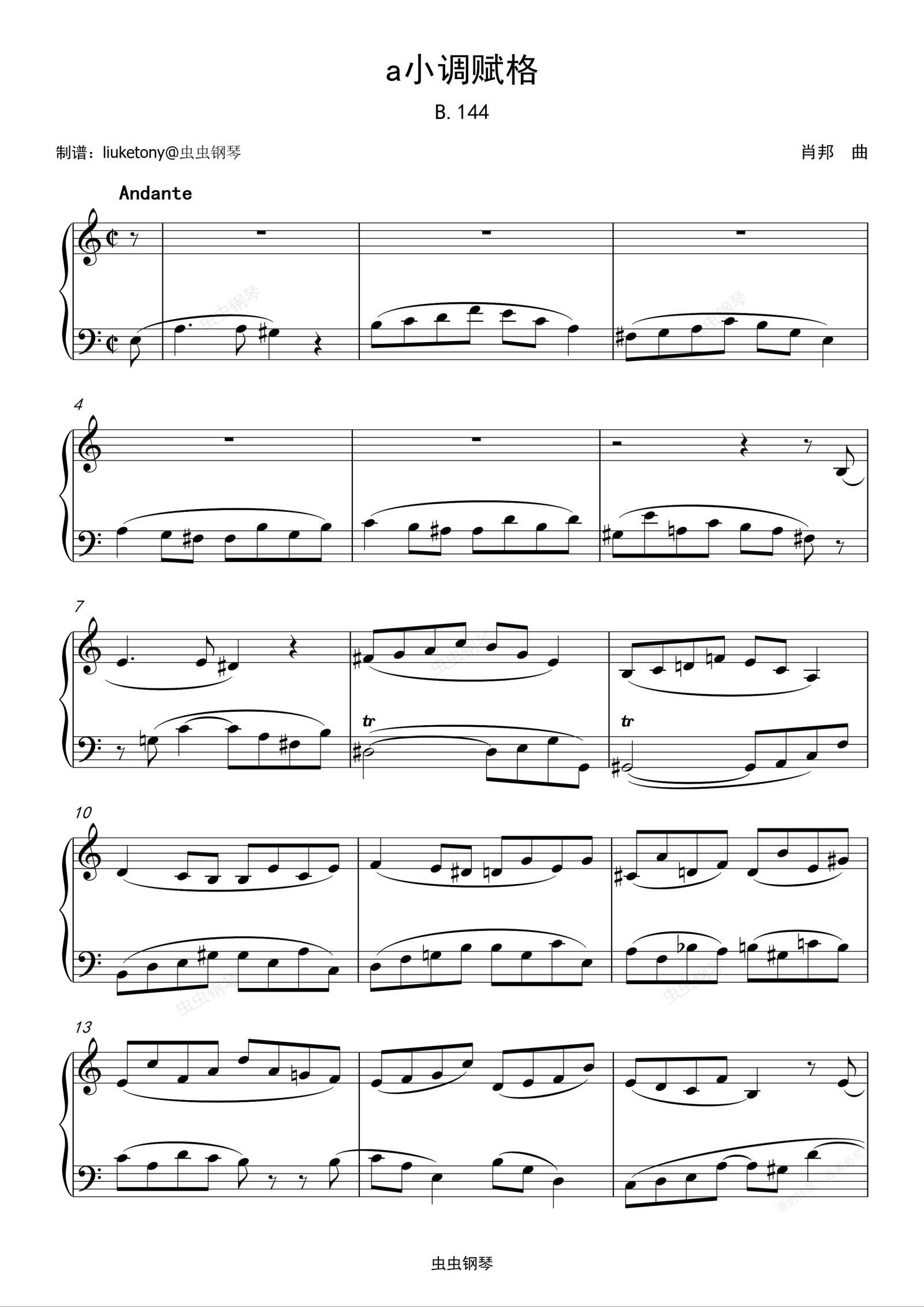 钢琴谱:7级-复调乐曲-a小调赋格 B.144 (肖邦)