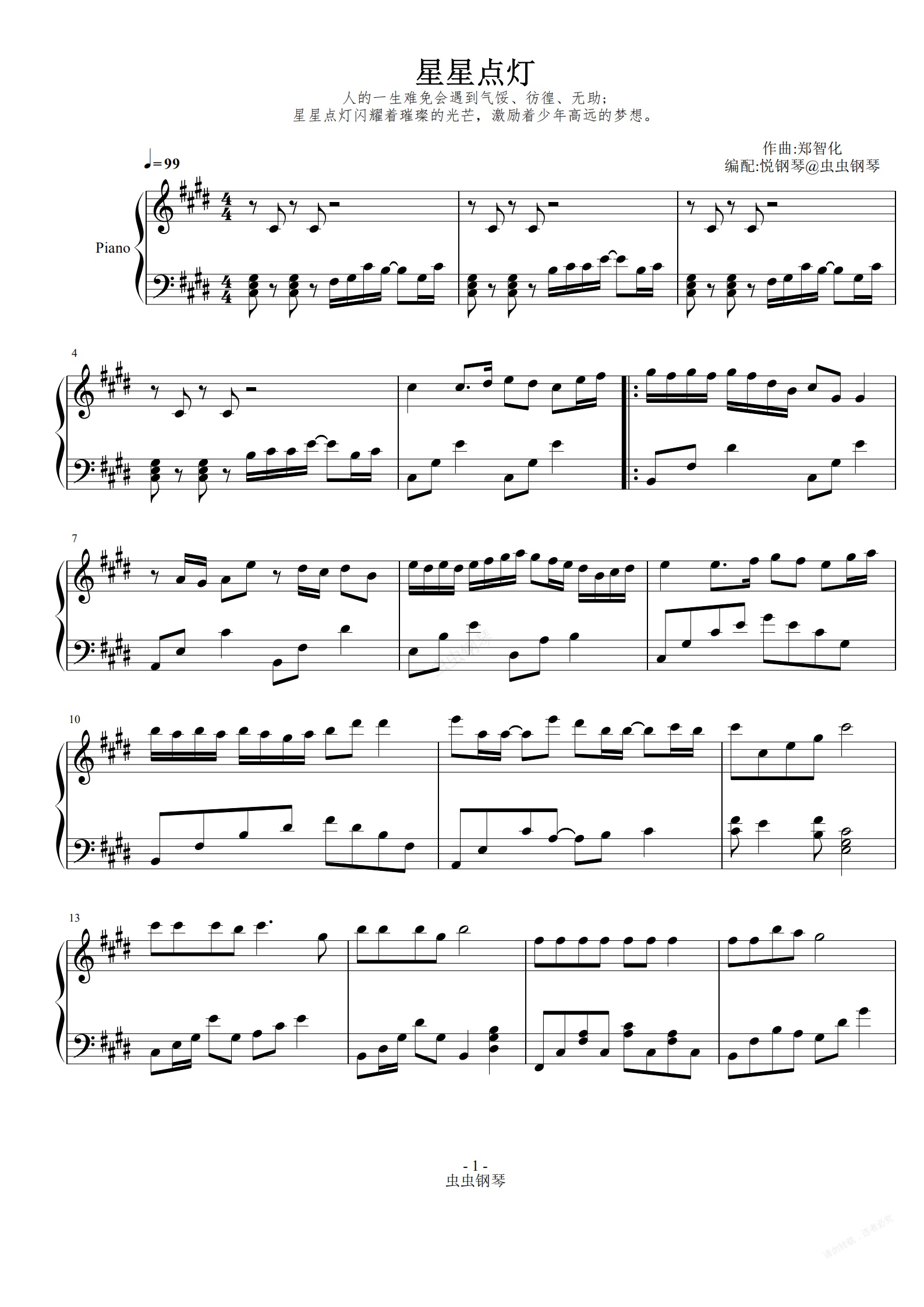 钢琴谱:星星点灯 (原调版)郑智化