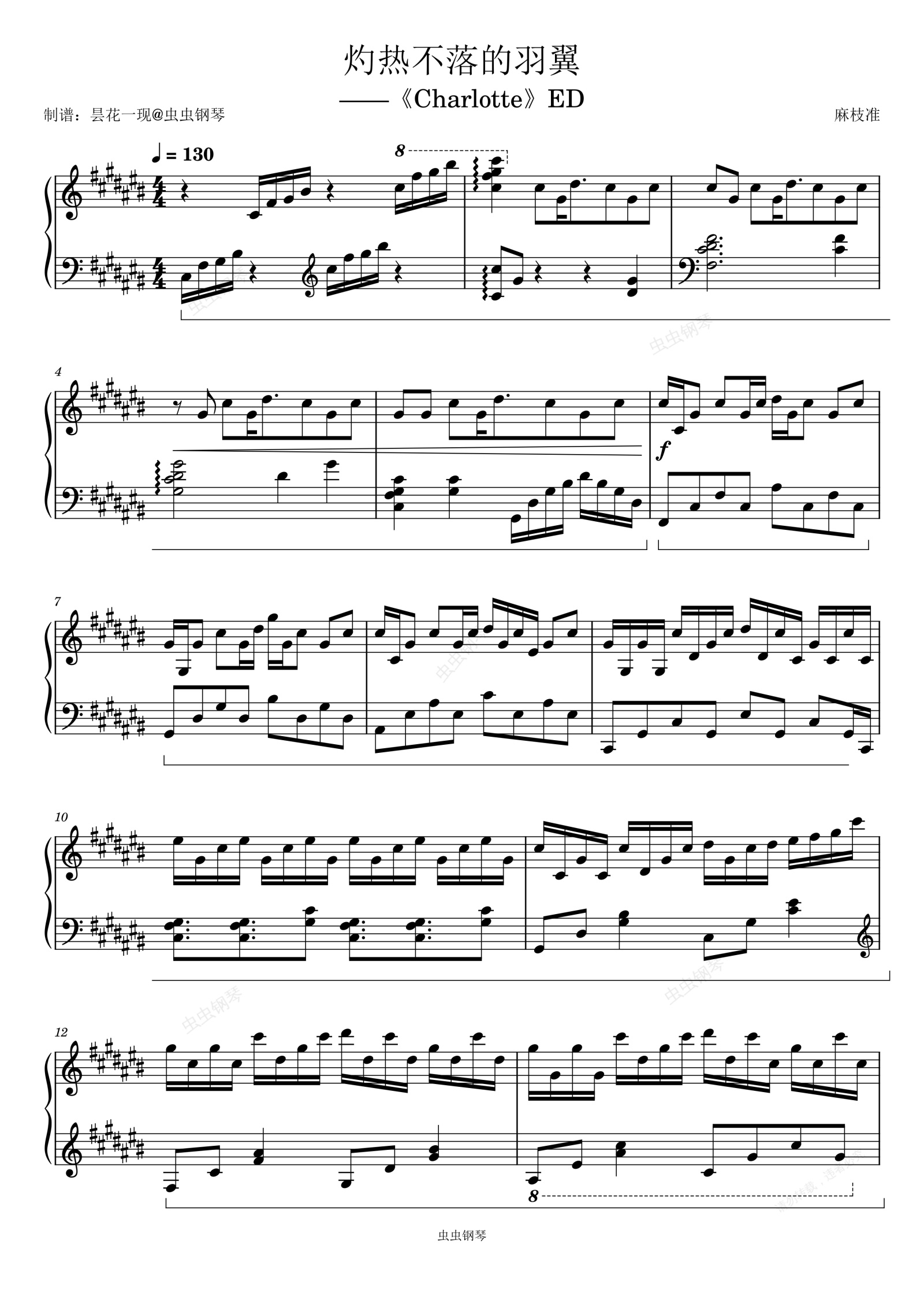 钢琴谱:《灼け落ちない翼 (燃烧未落的羽翼) 》-多田葵 (《夏洛特《Charlotte》》TV动画片尾曲)-极限还原版