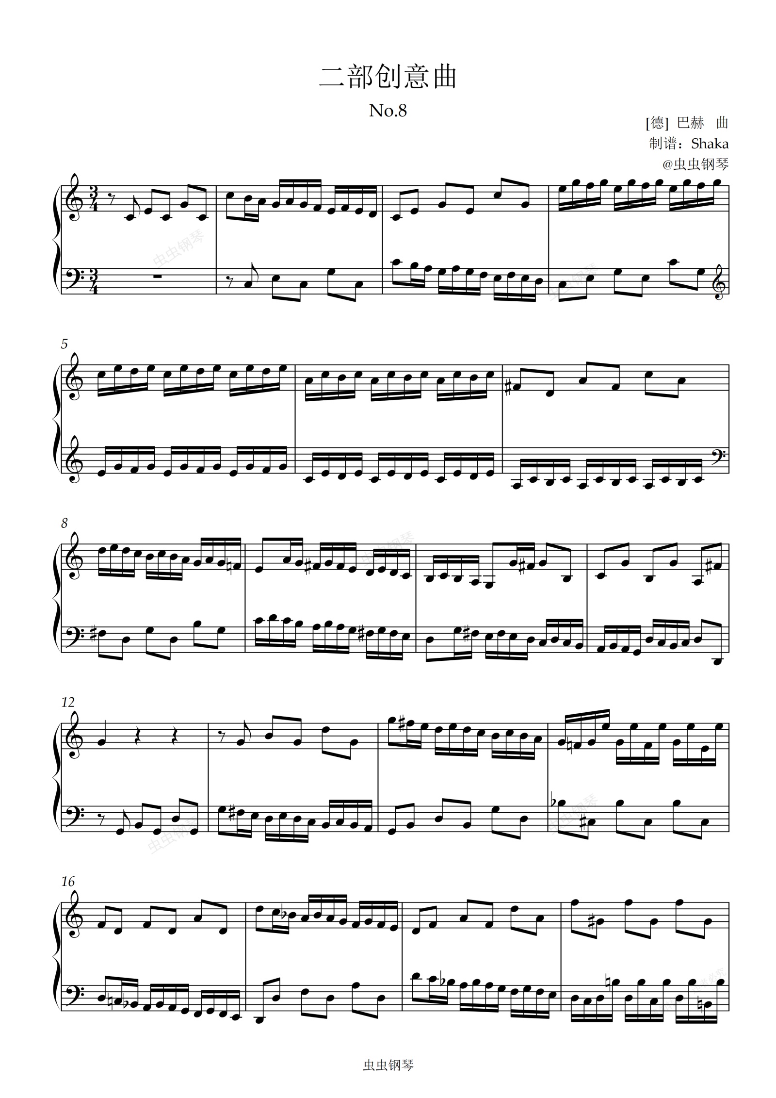 钢琴谱:巴赫 二部创意曲 No.8 C调版 全国音协5考级级考级曲目