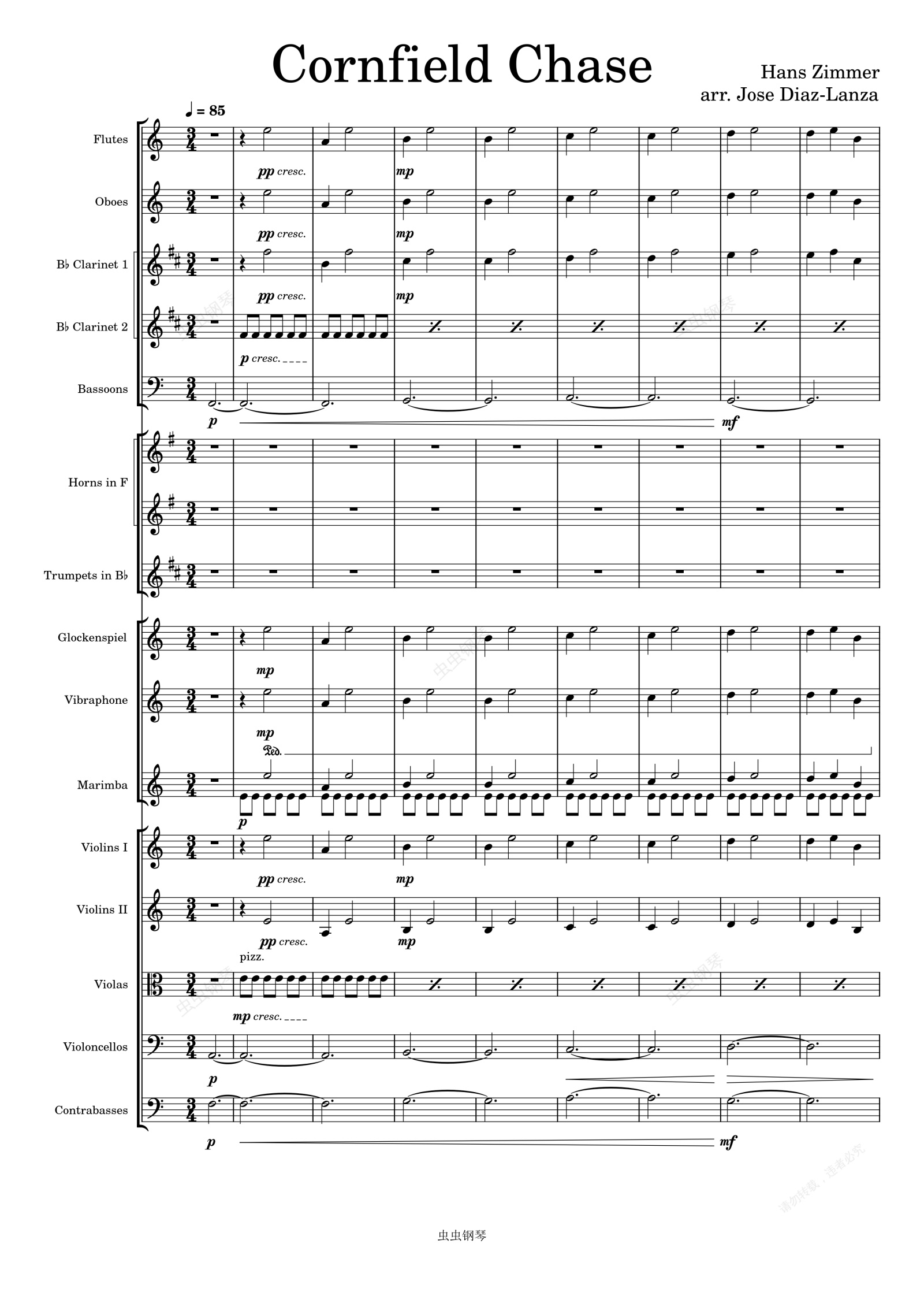 钢琴谱:Cornfield Chase 星际穿越(合奏大谱)