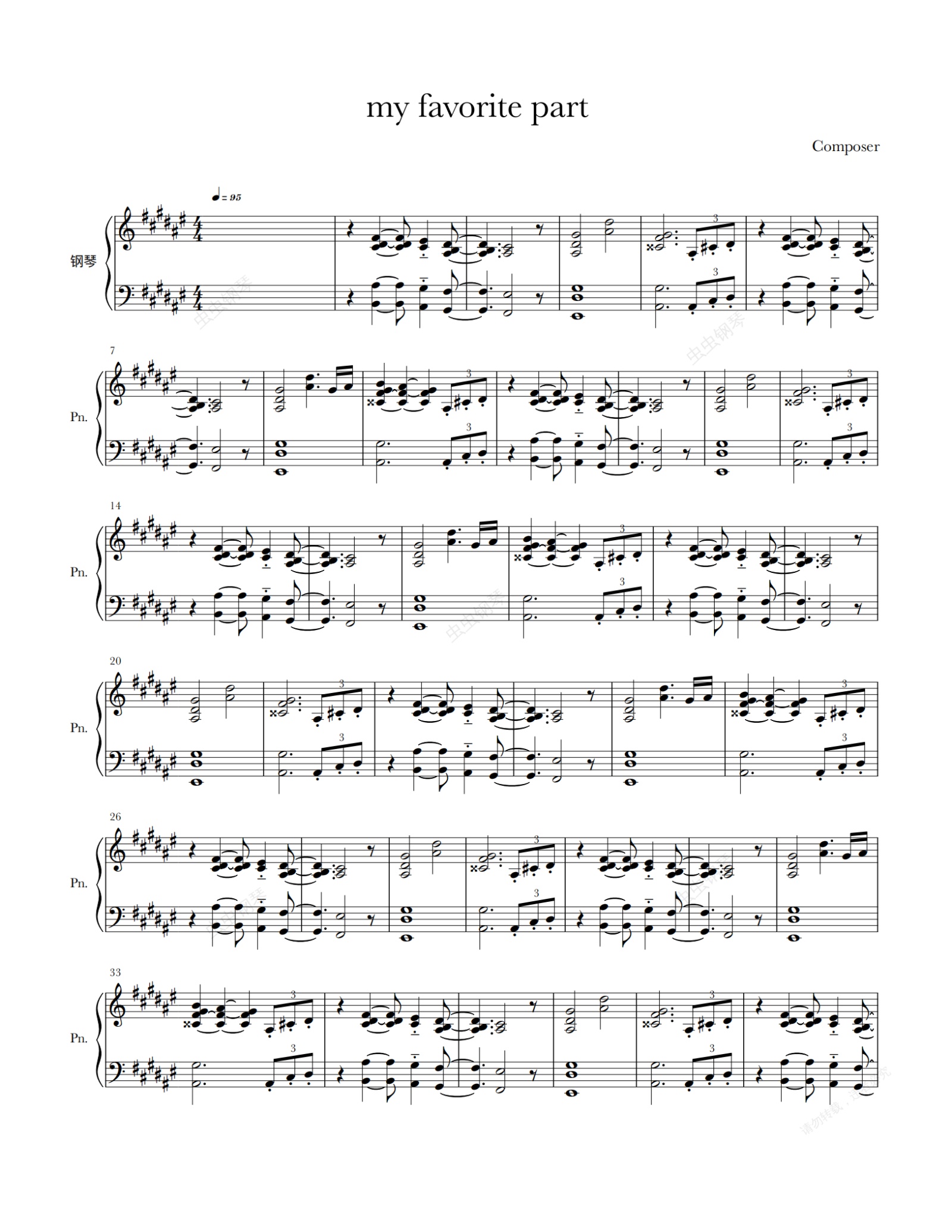 钢琴谱:my favorite part(feat Ariana Grande)钢琴伴奏