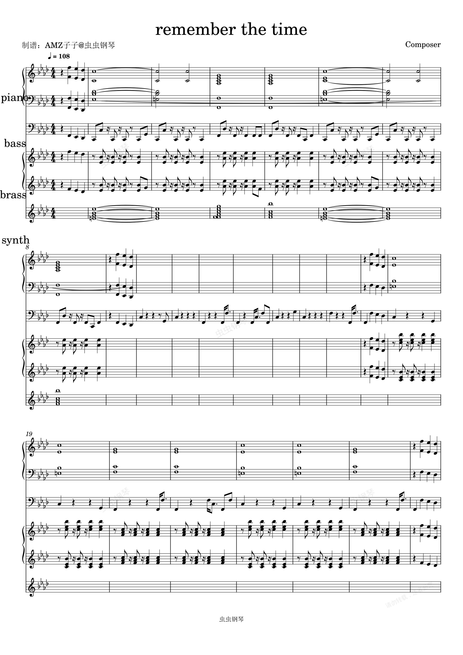 钢琴谱:Remember The Time 迈克杰克逊钢琴贝斯合成器管乐器集合谱Michal Jackson