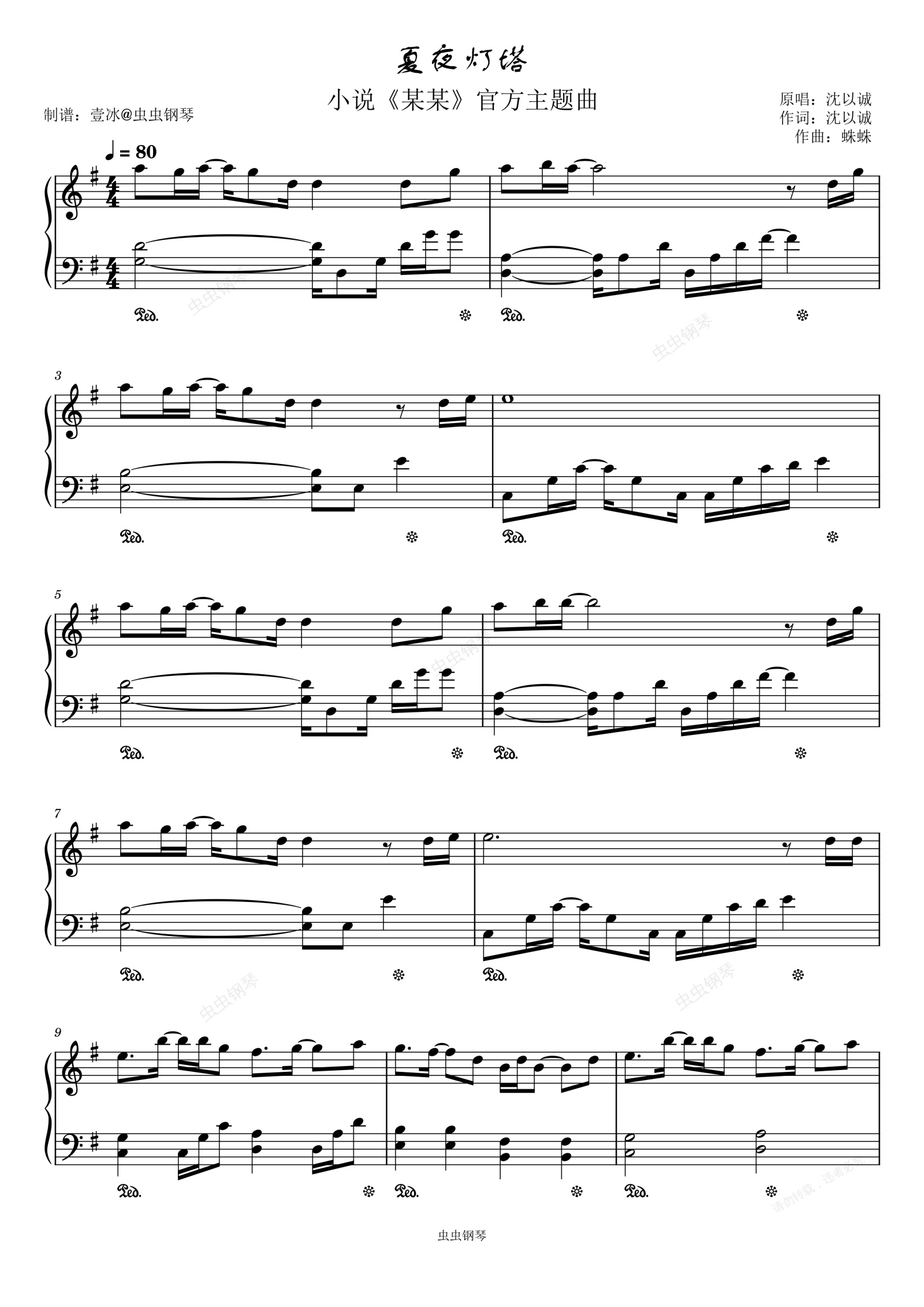 钢琴谱:夏夜灯塔//小说《某某》主题曲-原调