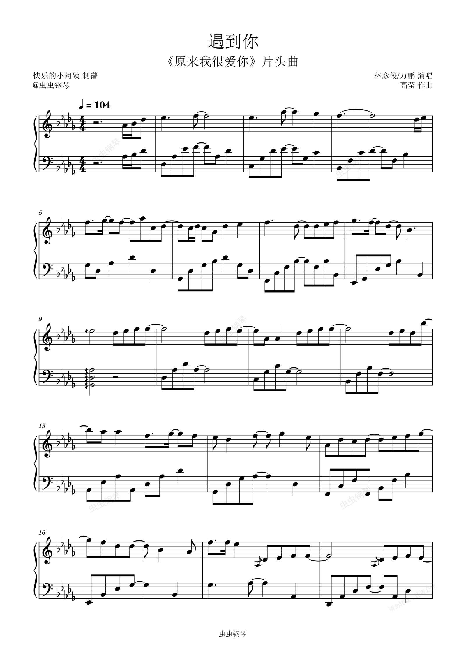 钢琴谱:遇到你-《原来我很爱你》片头曲