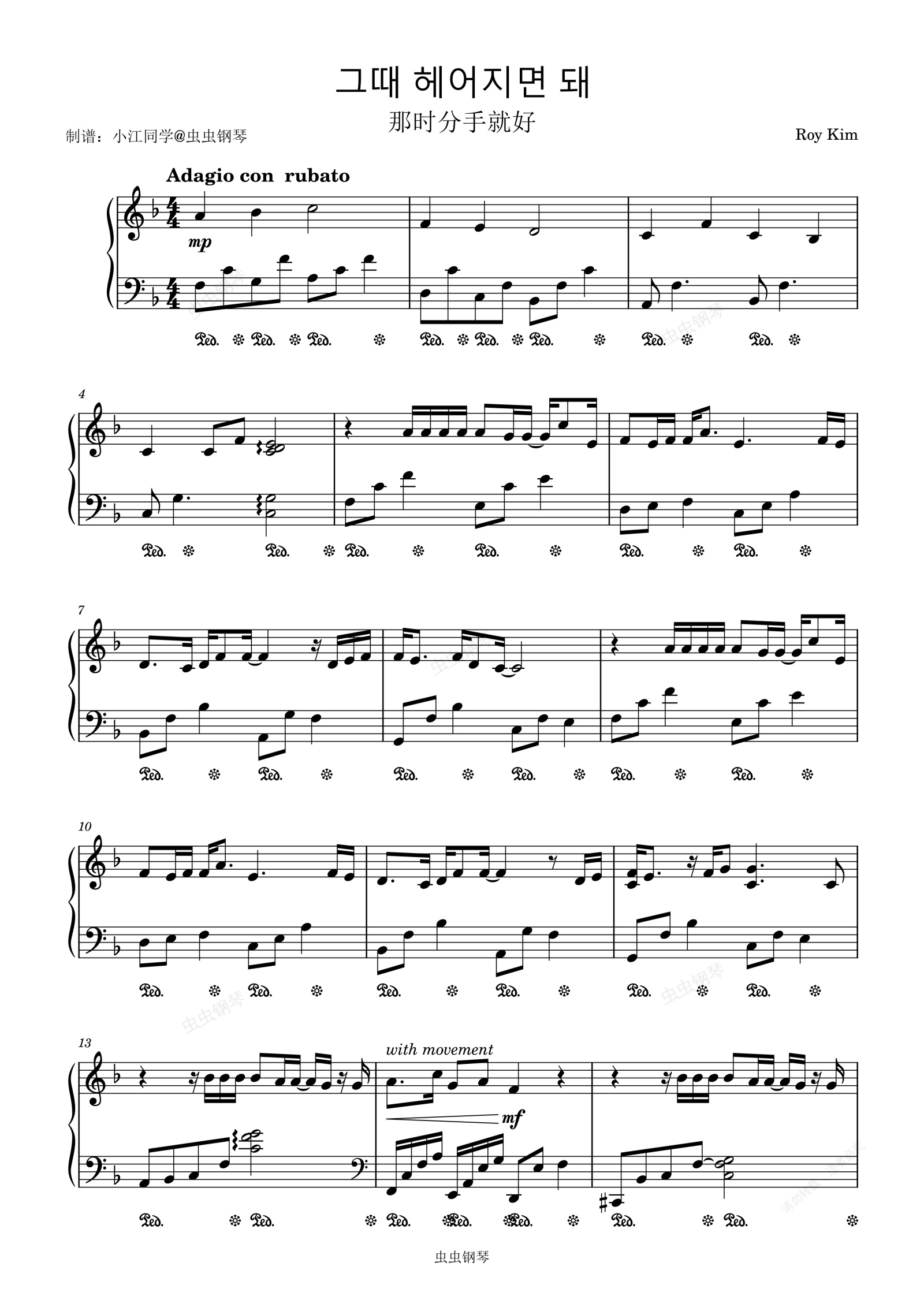 钢琴谱:那时分手就好 그때 헤어지면 돼