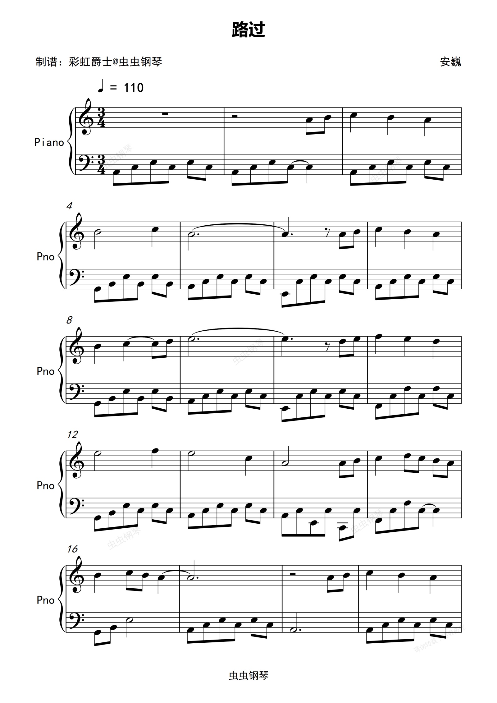 钢琴谱:路过 风犬少年的天空插曲  简单版 安巍