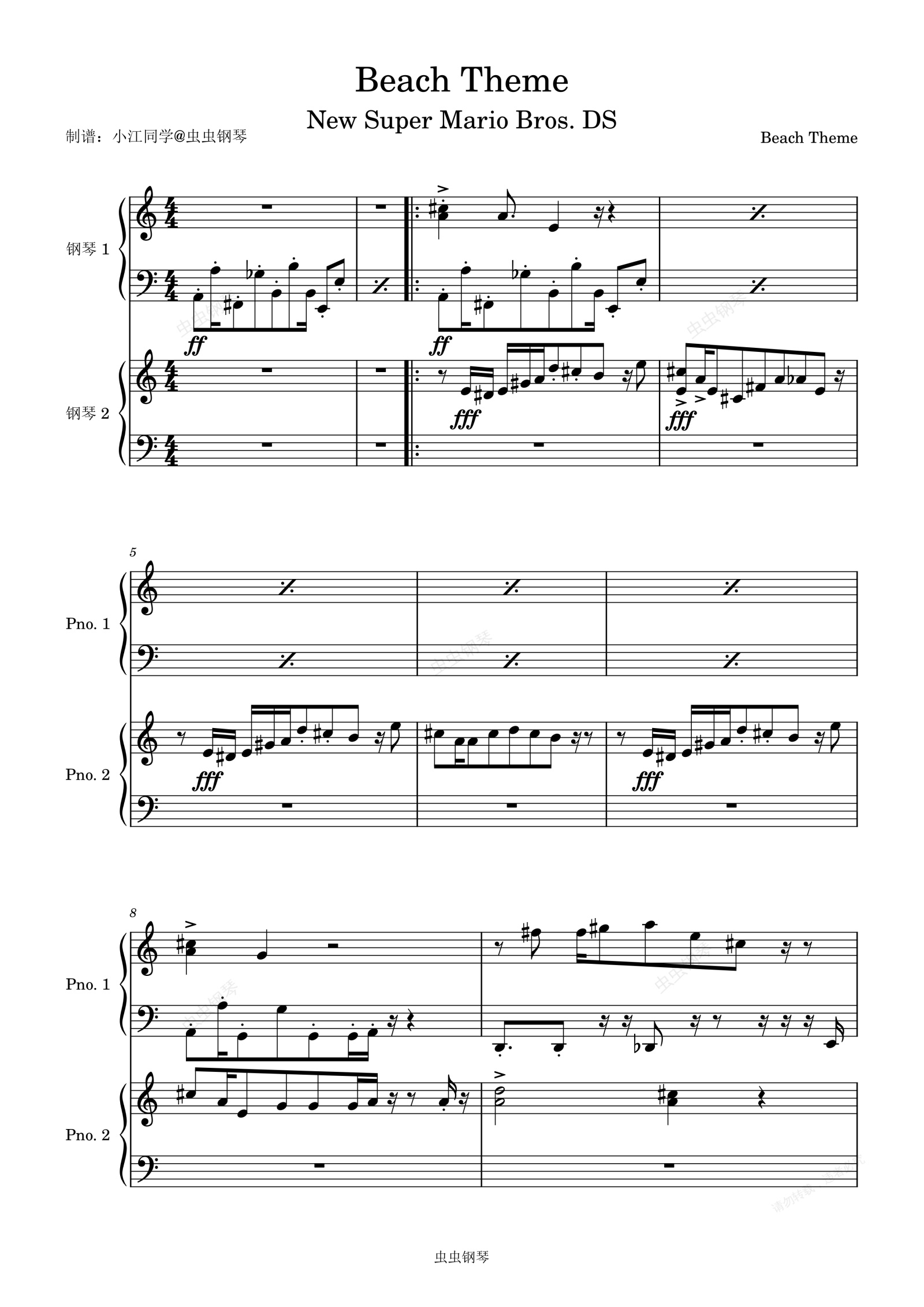 钢琴谱:新超级马里奥 海滩主题 Beach Theme