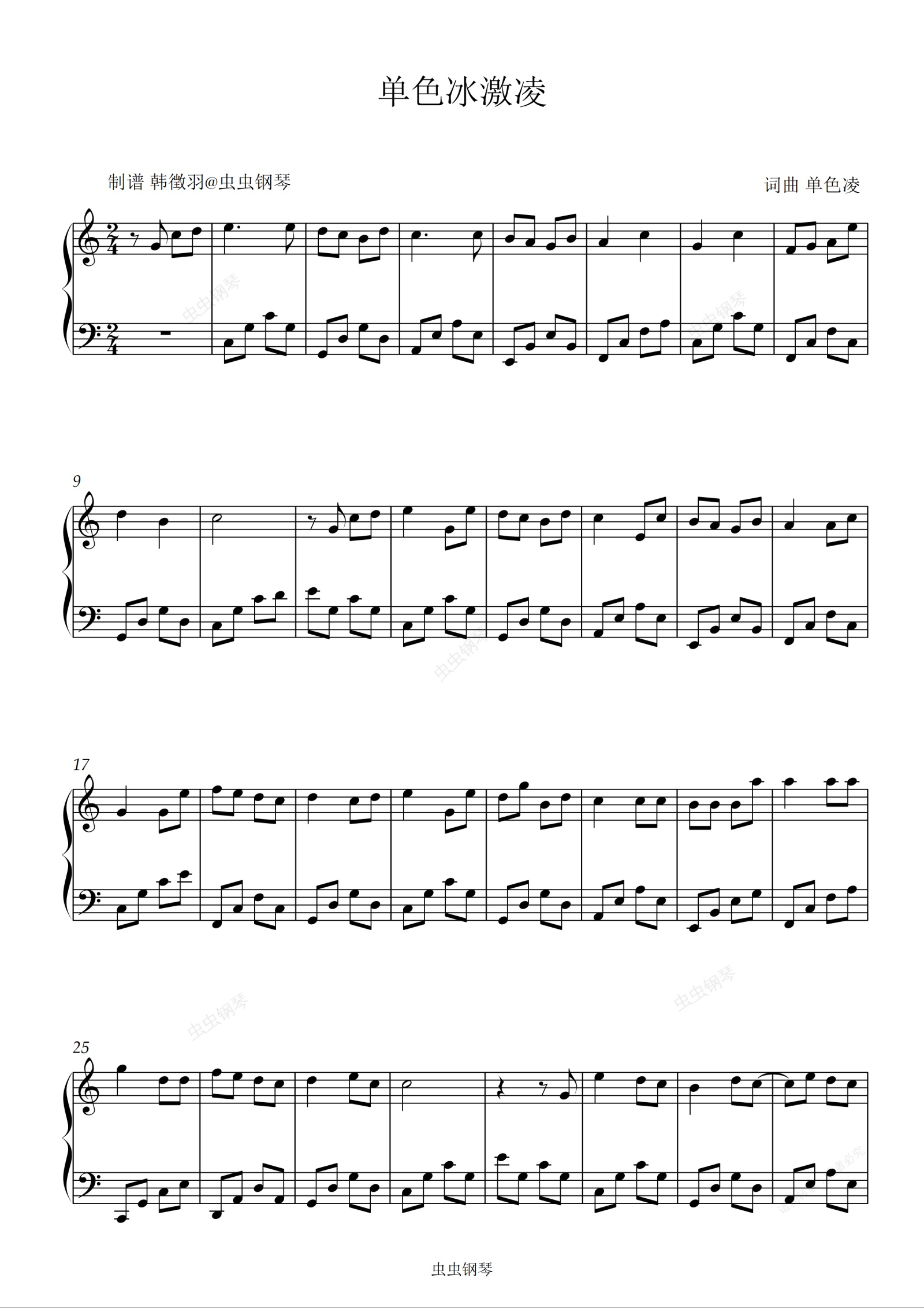 钢琴谱:单色冰激凌 单色凌 适合初学者
