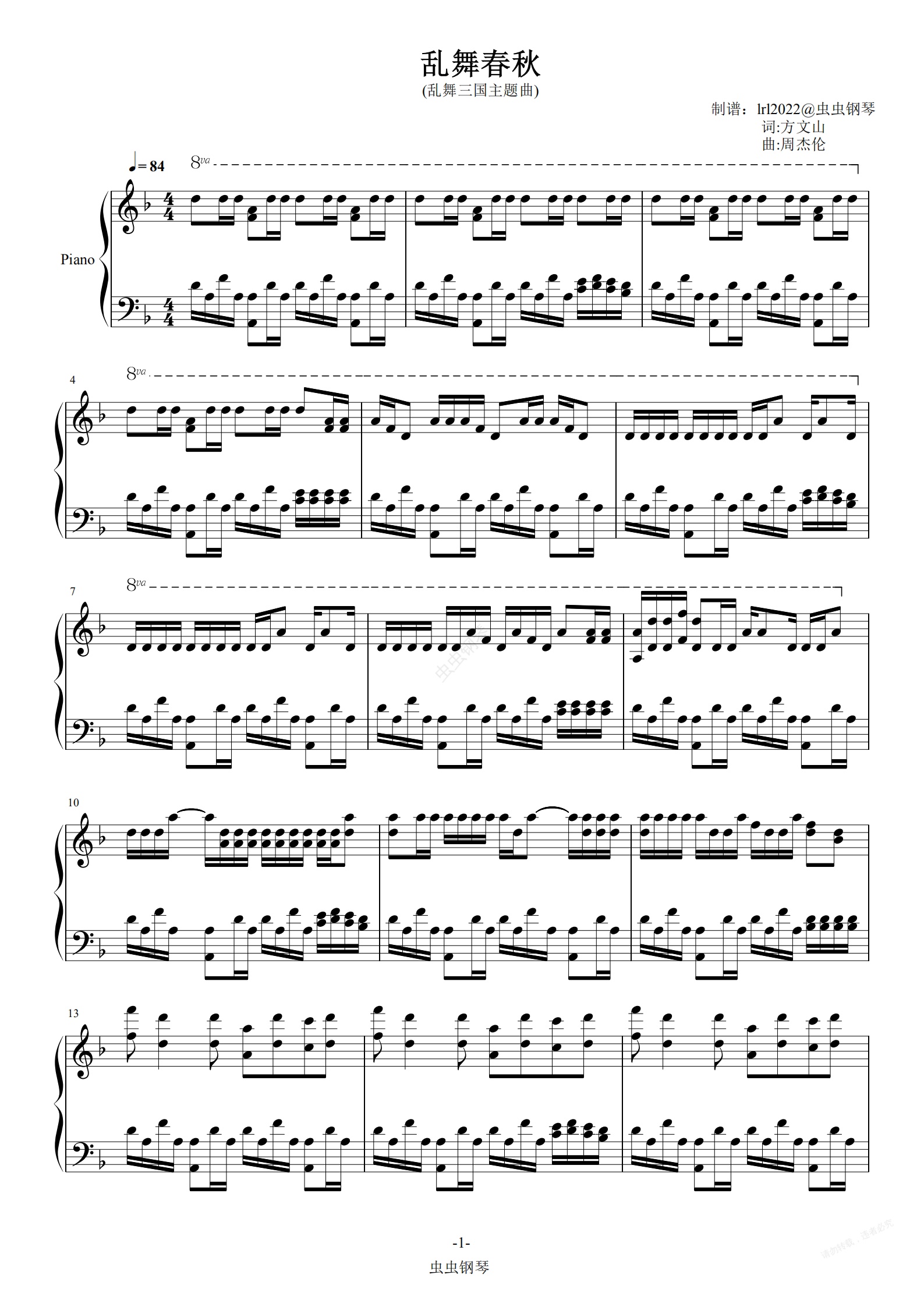 钢琴谱:乱舞春秋-乱舞三国主题曲-周杰伦-独奏版-钢琴谱