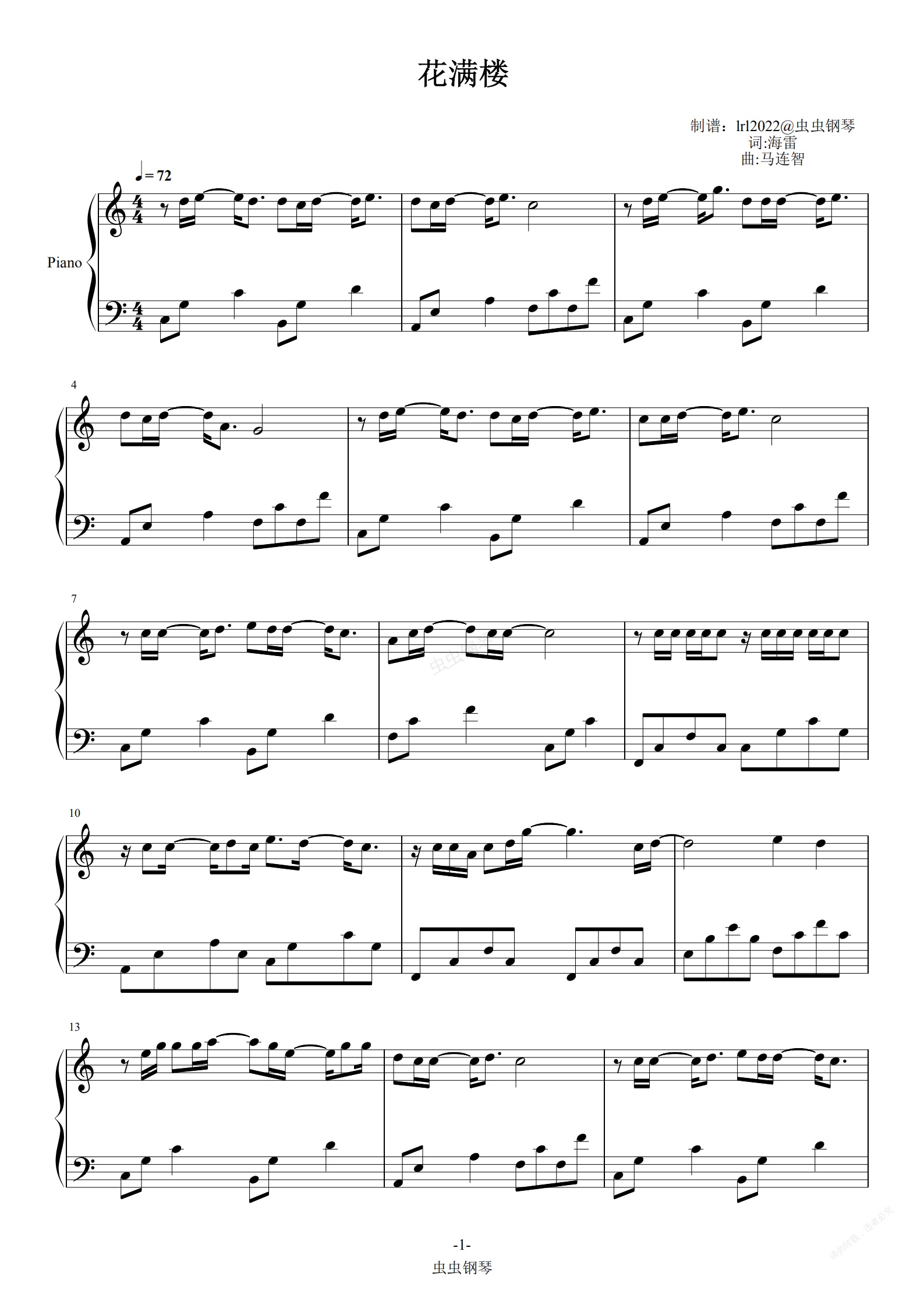 钢琴谱:花满楼-C调简单版-许嵩-独奏版-钢琴谱