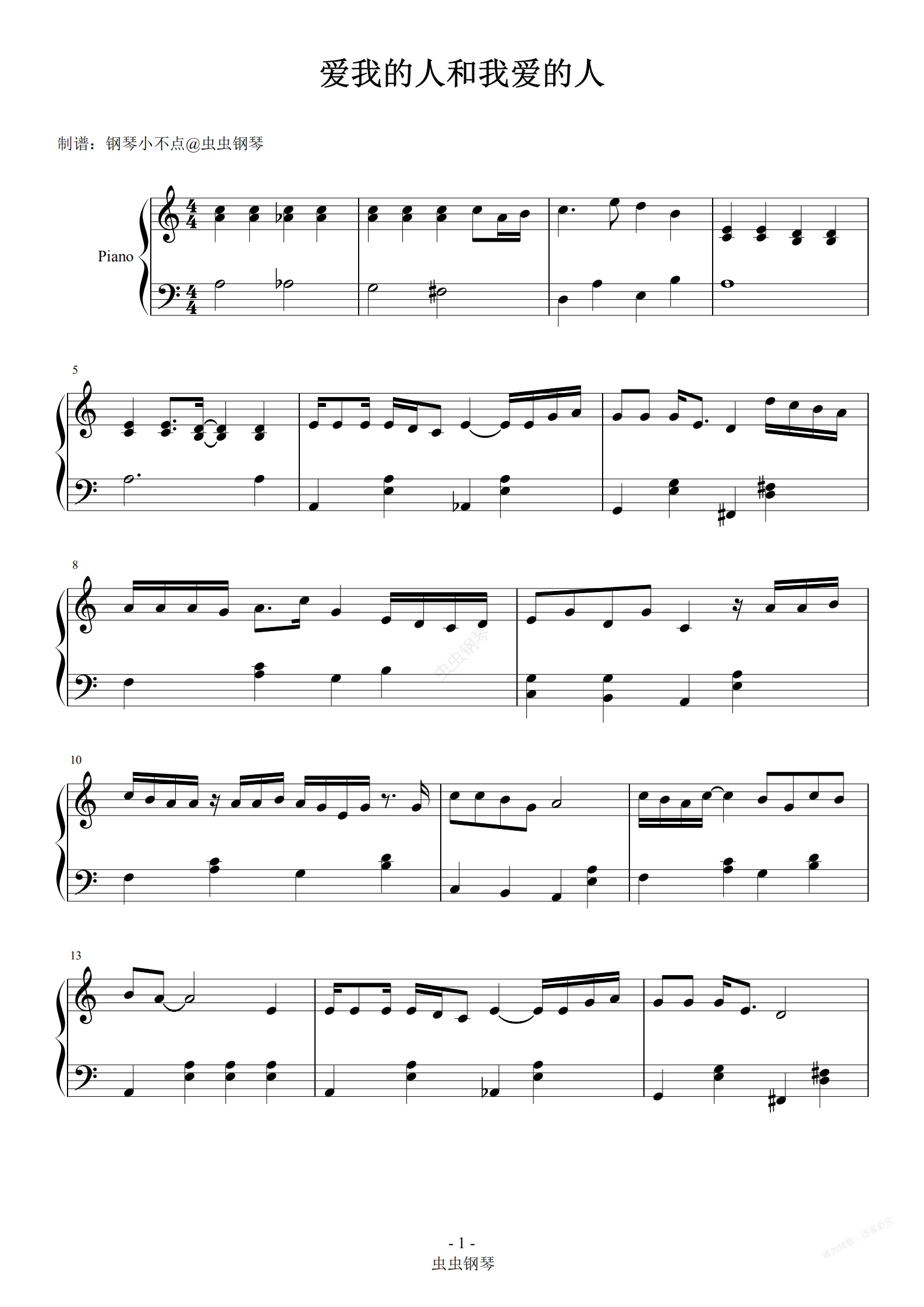 钢琴谱:爱我的人和我爱的人 【简易版】