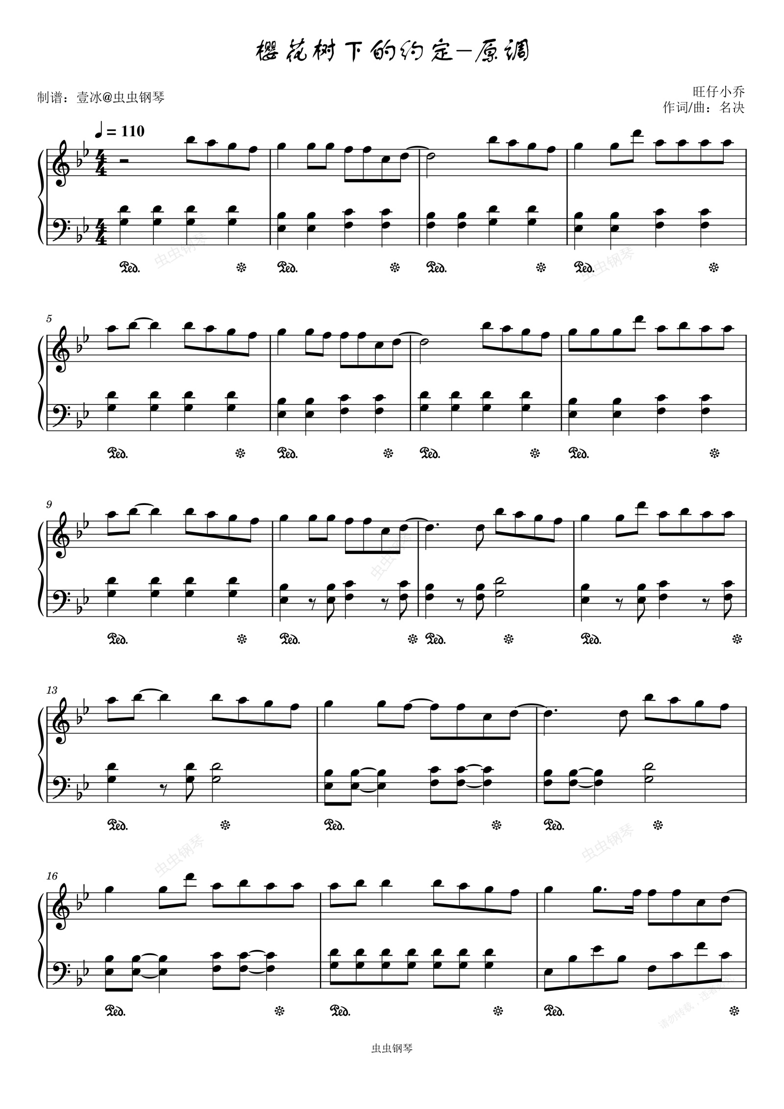 钢琴谱:樱花树下的约定//旺仔小乔-原调
