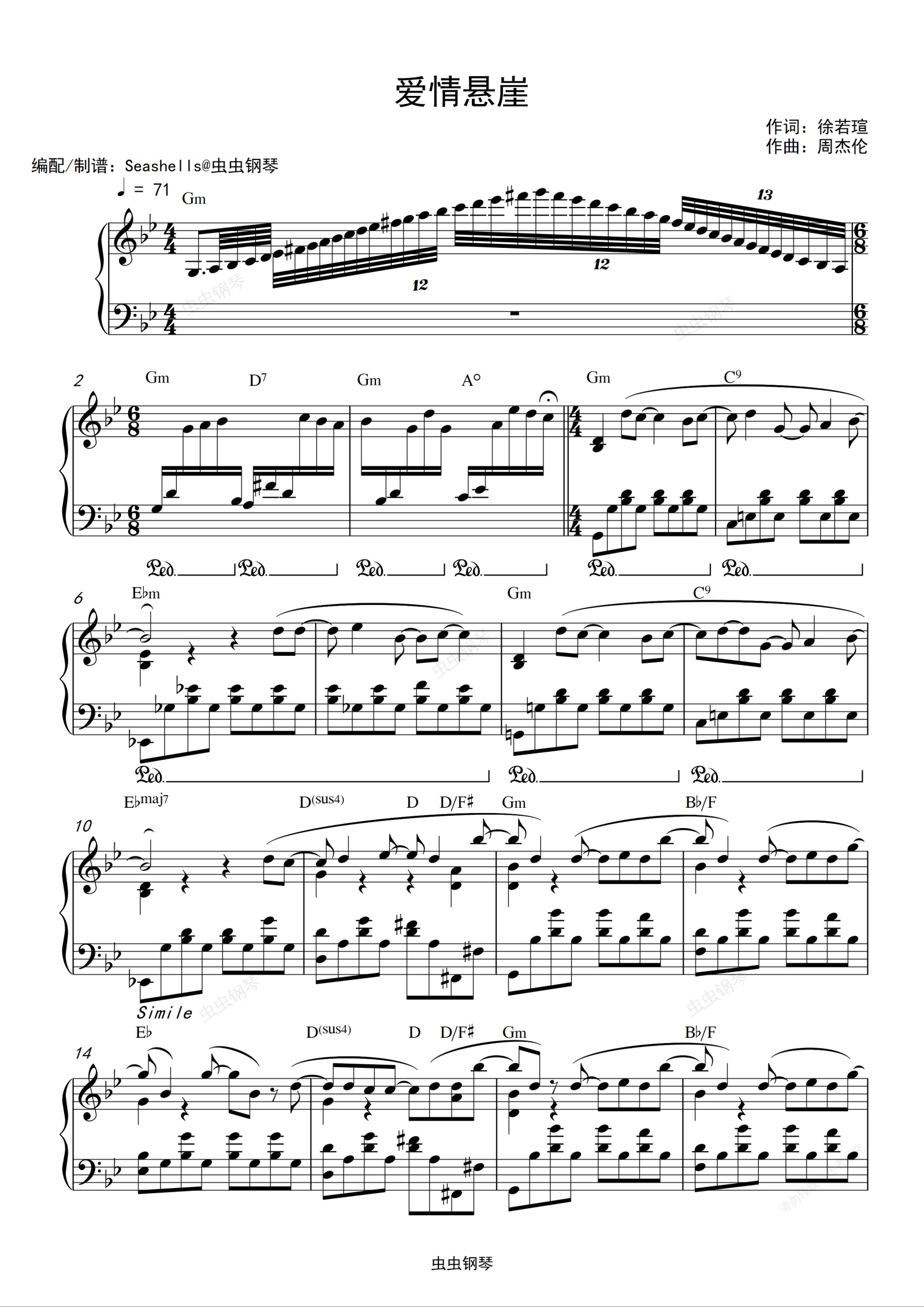 钢琴谱:周杰伦-《爱情悬崖》精编钢琴独奏