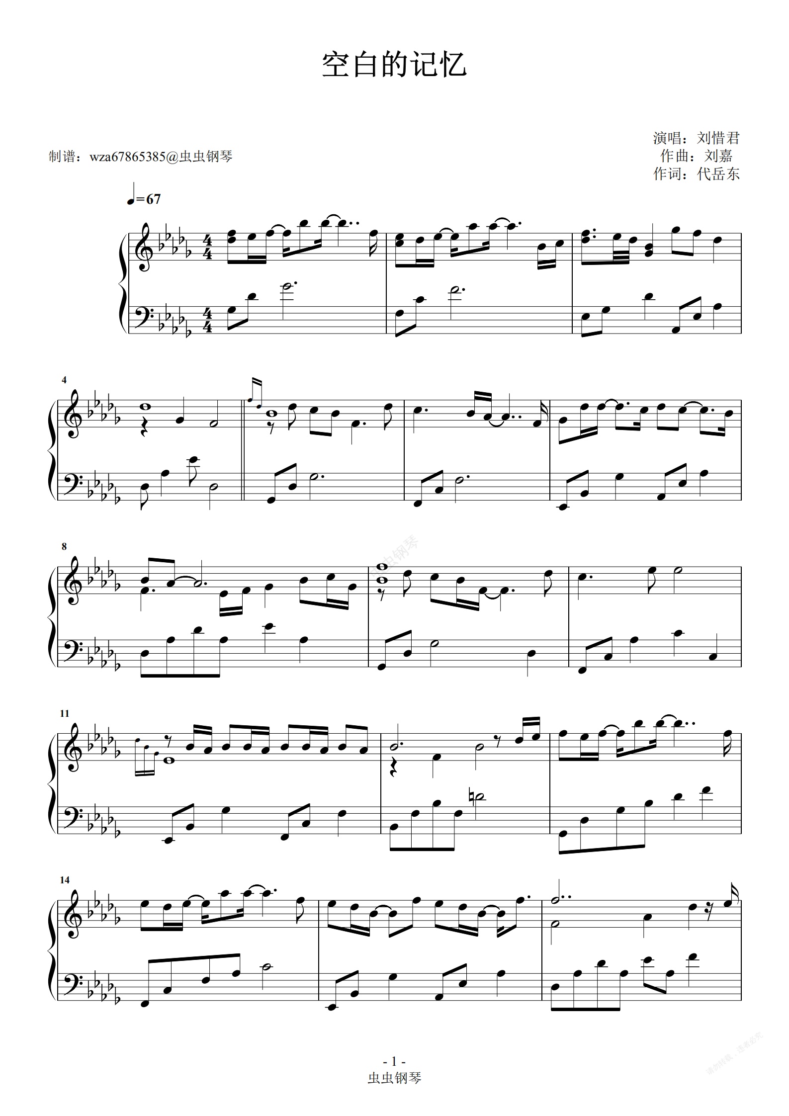 钢琴谱:空白的记忆-鳄鱼与牙签鸟 电视剧