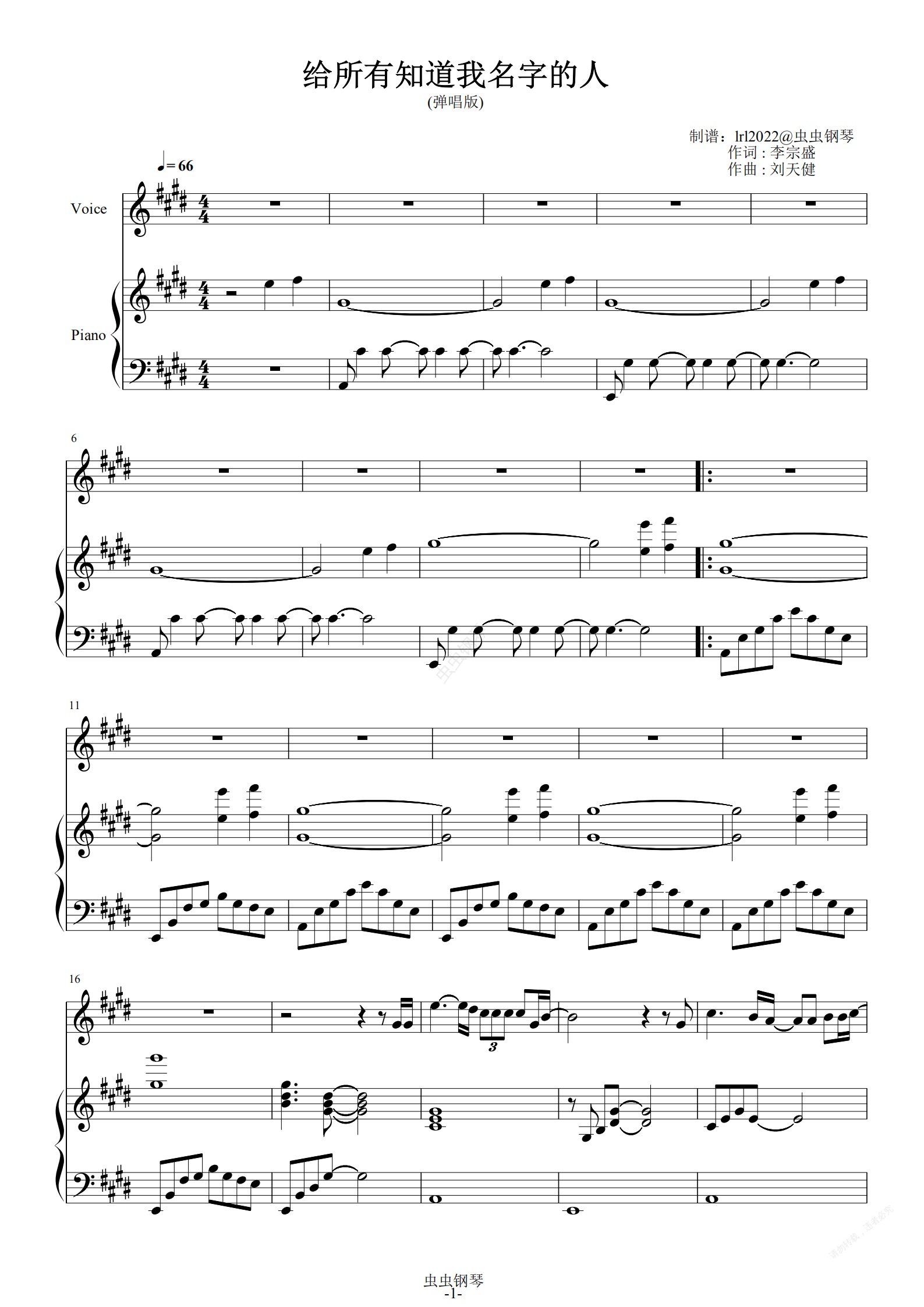 钢琴谱:给所有知道我名字的人-弹唱版-钢琴谱-罗琦