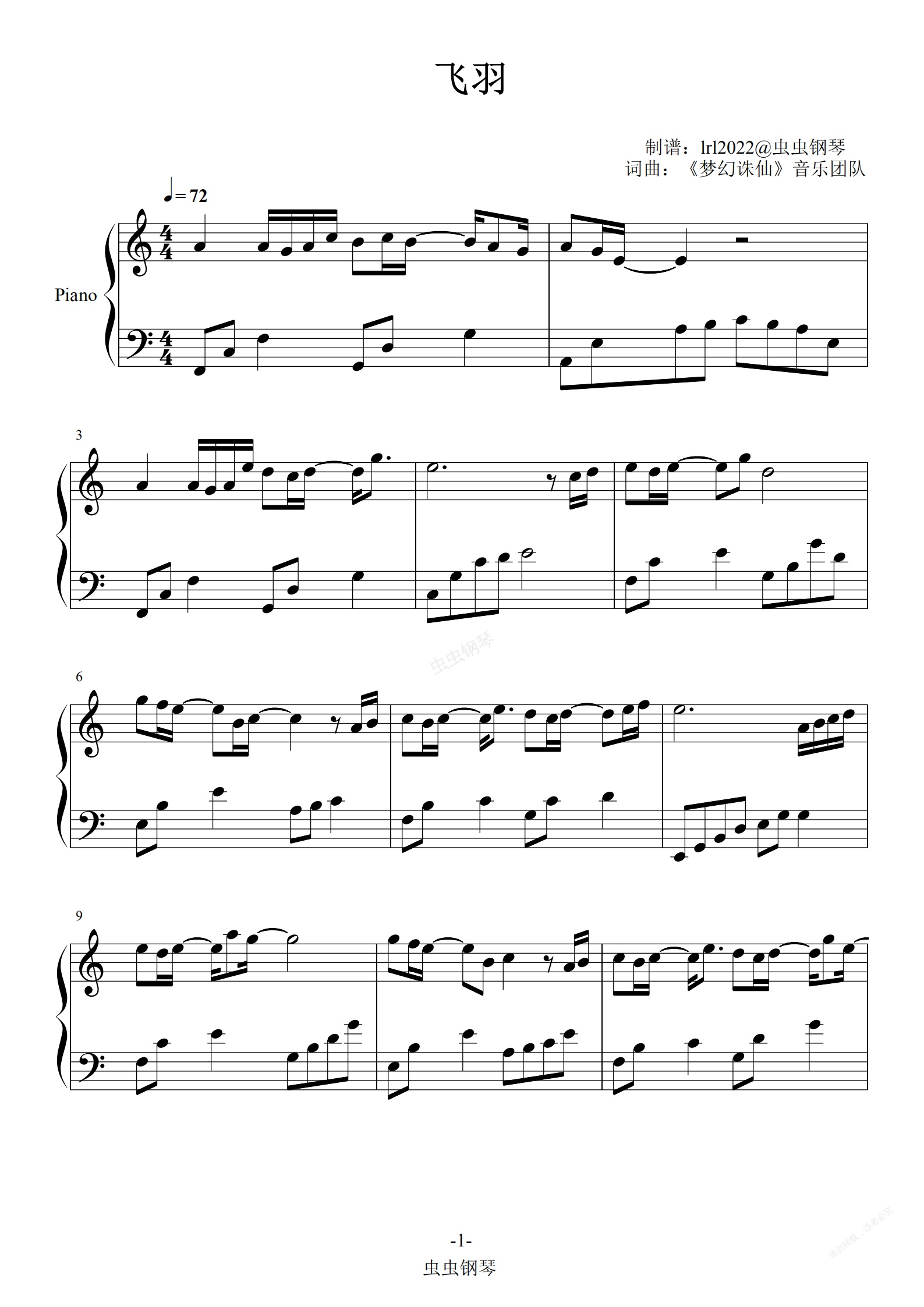 钢琴谱:飞羽-C调简单版-梦幻诛仙主题曲-独奏版-钢琴谱