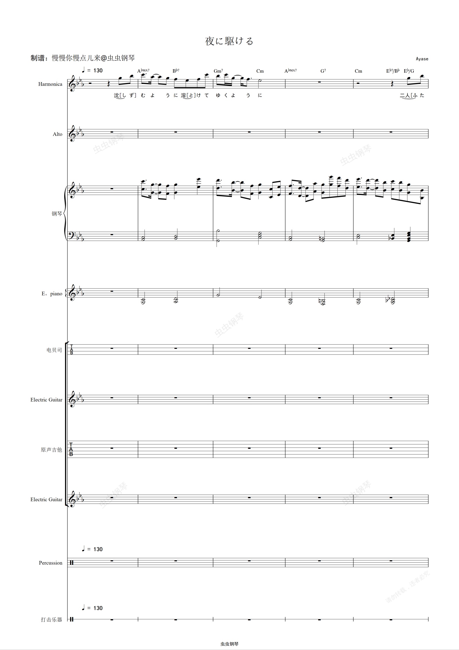 钢琴谱:夜に駆ける-向夜晚飞奔-YOASOBI 乐队总谱