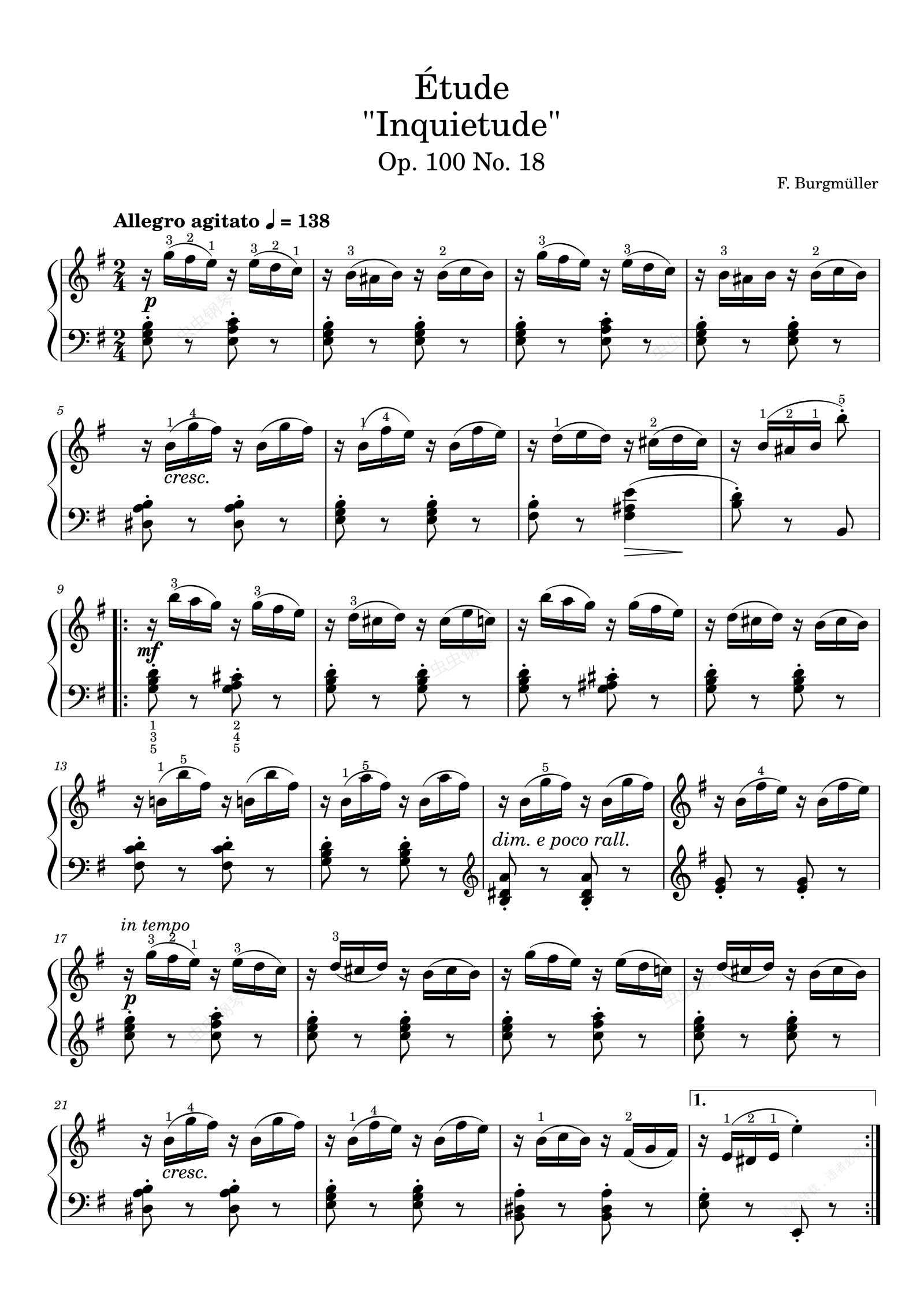 钢琴谱:Étude Op. 100 No. 18 Discomfort