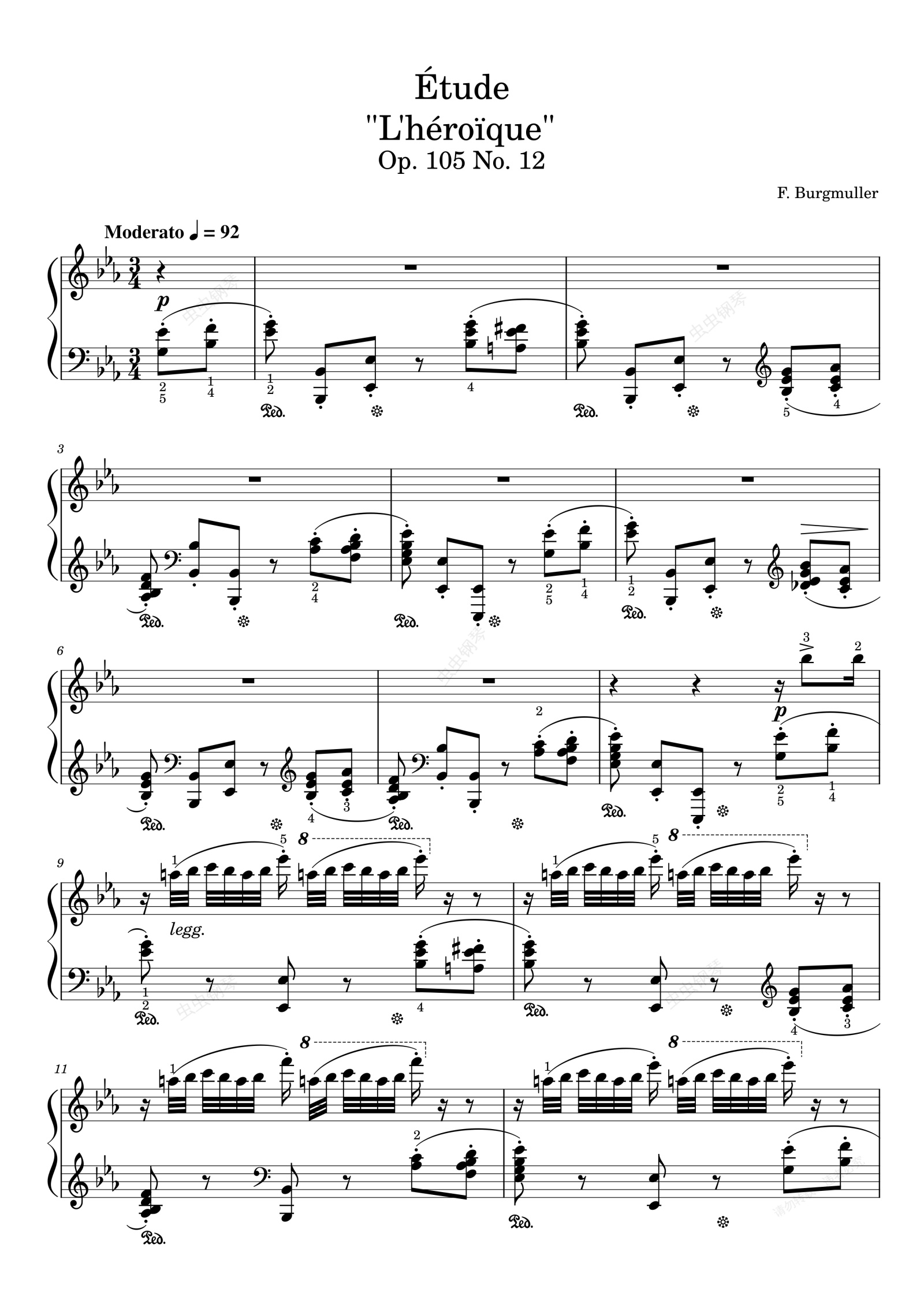 钢琴谱:Étude Op. 105 No. 12 L'héroïque