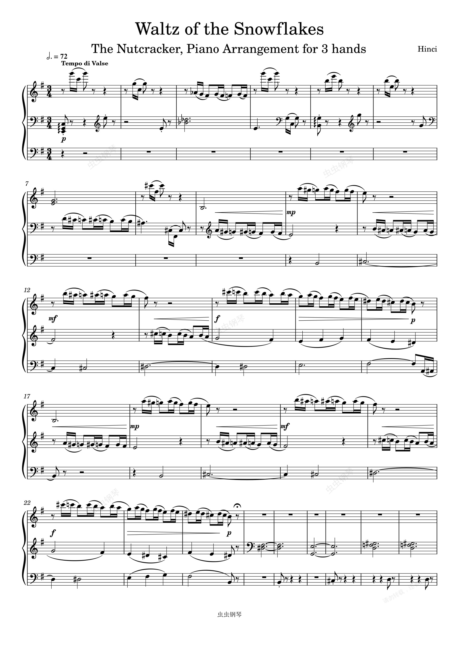 钢琴谱:The Nutcracker, 9. Waltz of the Snowflakes (Piano)