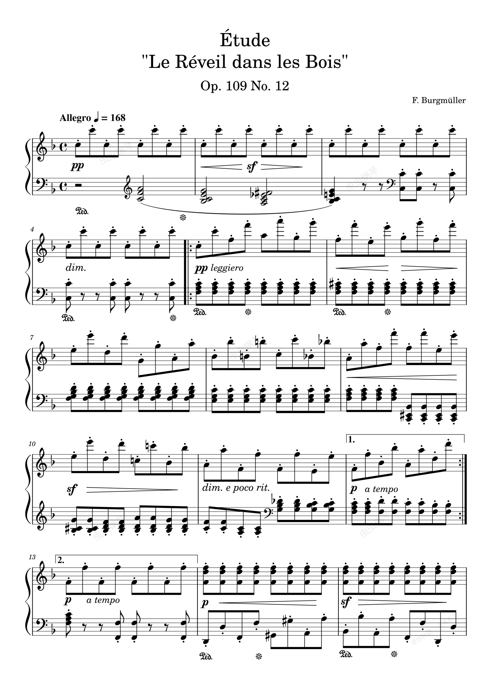 钢琴谱:Étude Op. 109 No. 12 Le Réveil dans les Bois