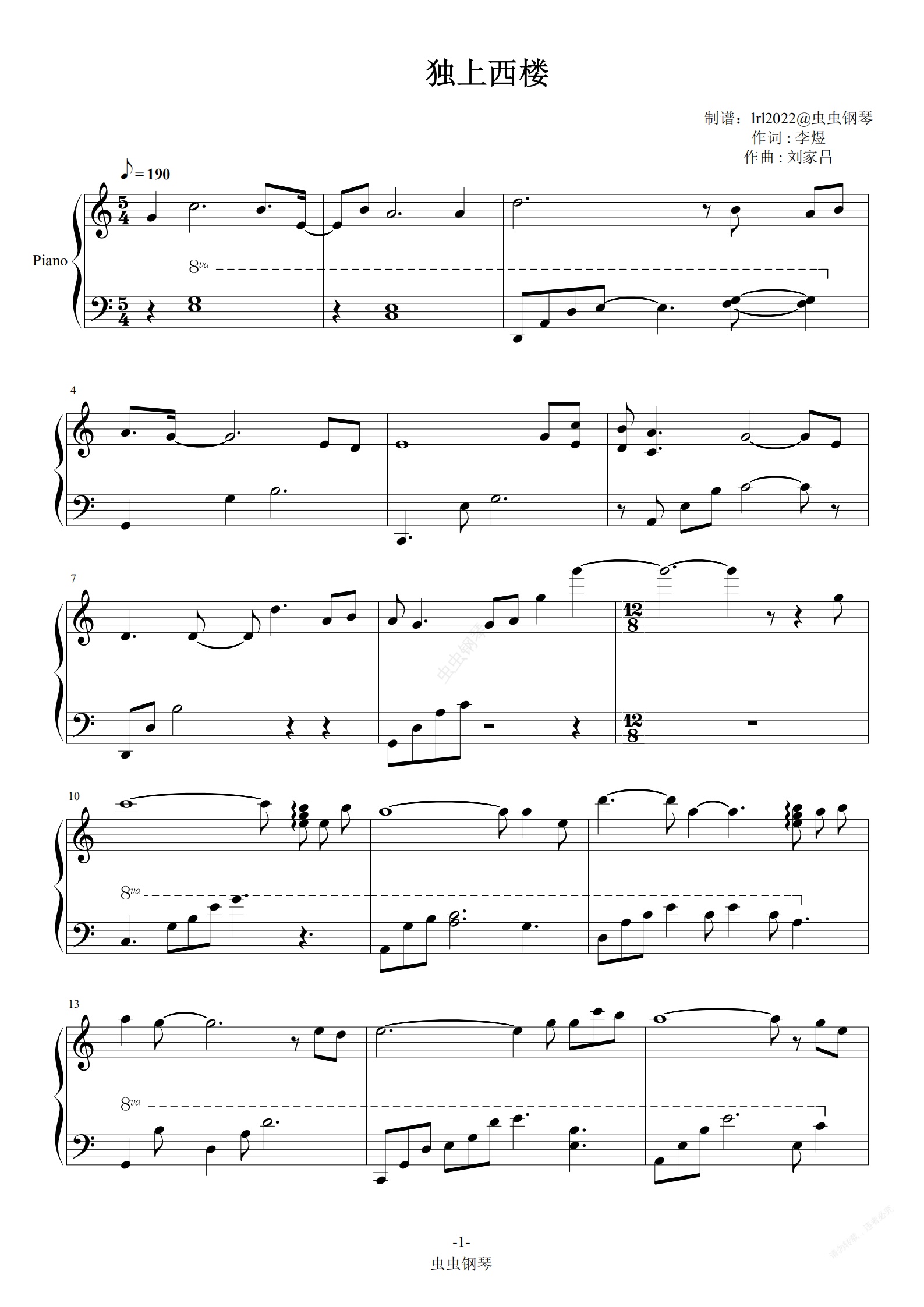 钢琴谱:独上西楼-邓丽君-C调-独奏版-钢琴谱