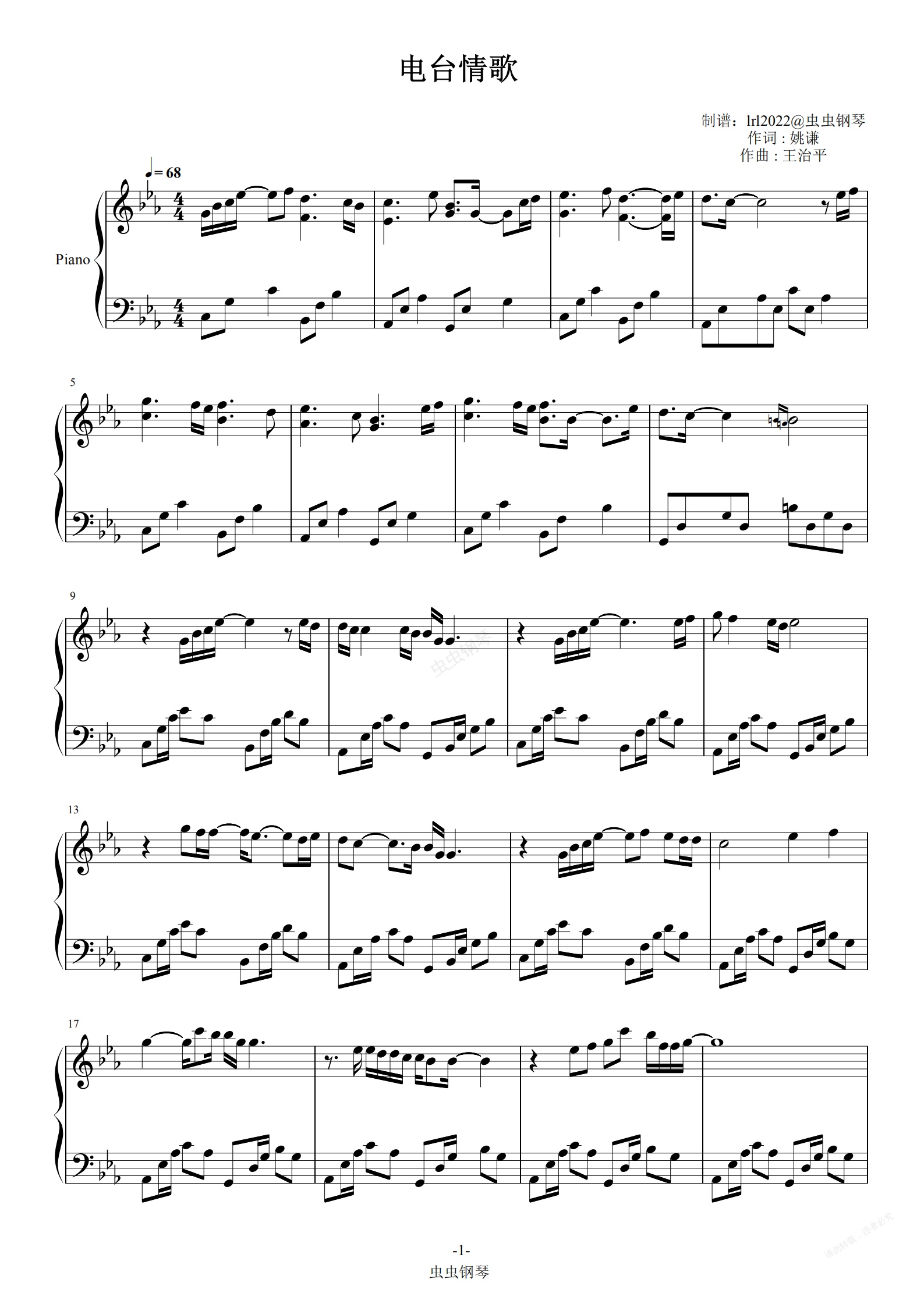钢琴谱:电台情歌-简单版-莫文蔚-独奏版-钢琴谱
