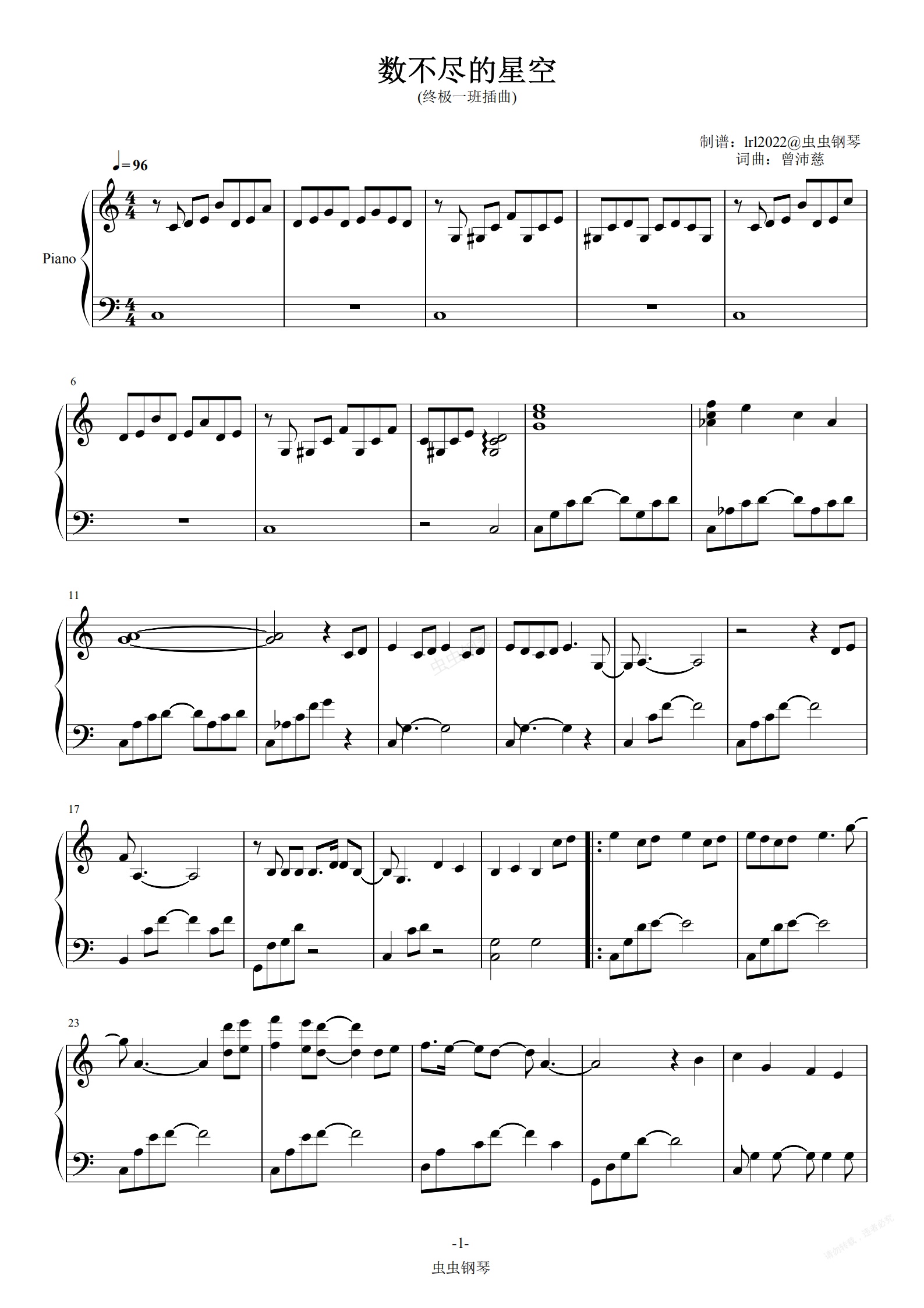 钢琴谱:数不尽的星空-终极一班插曲-独奏版-钢琴谱