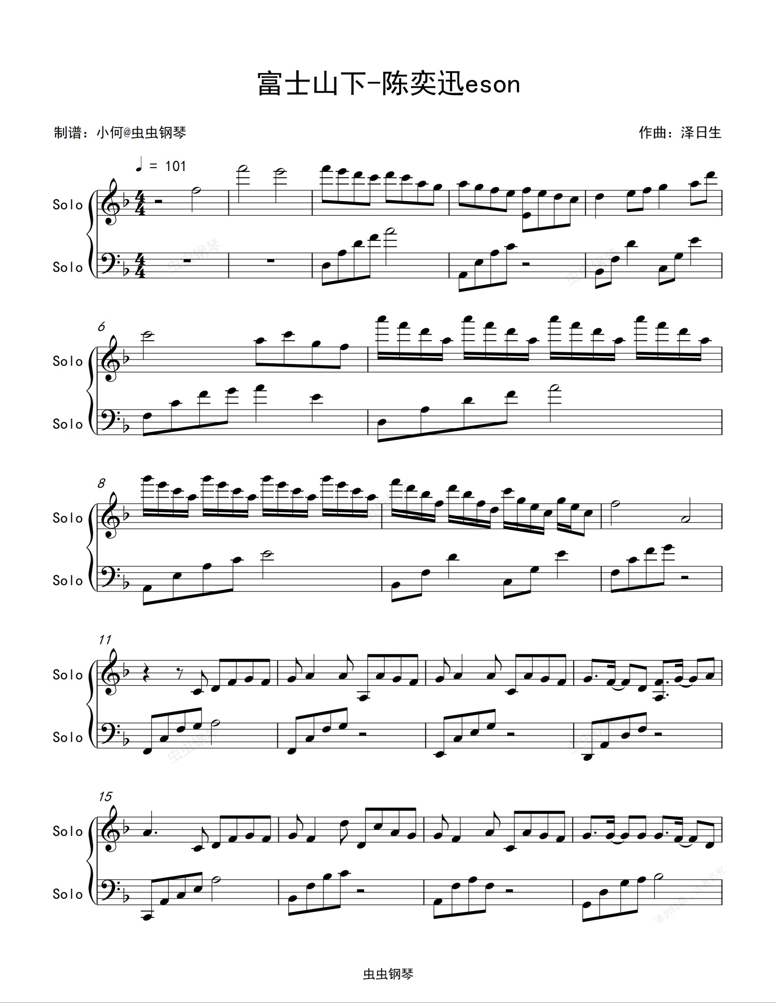 钢琴谱:富士山下-陈奕迅(简单好听)