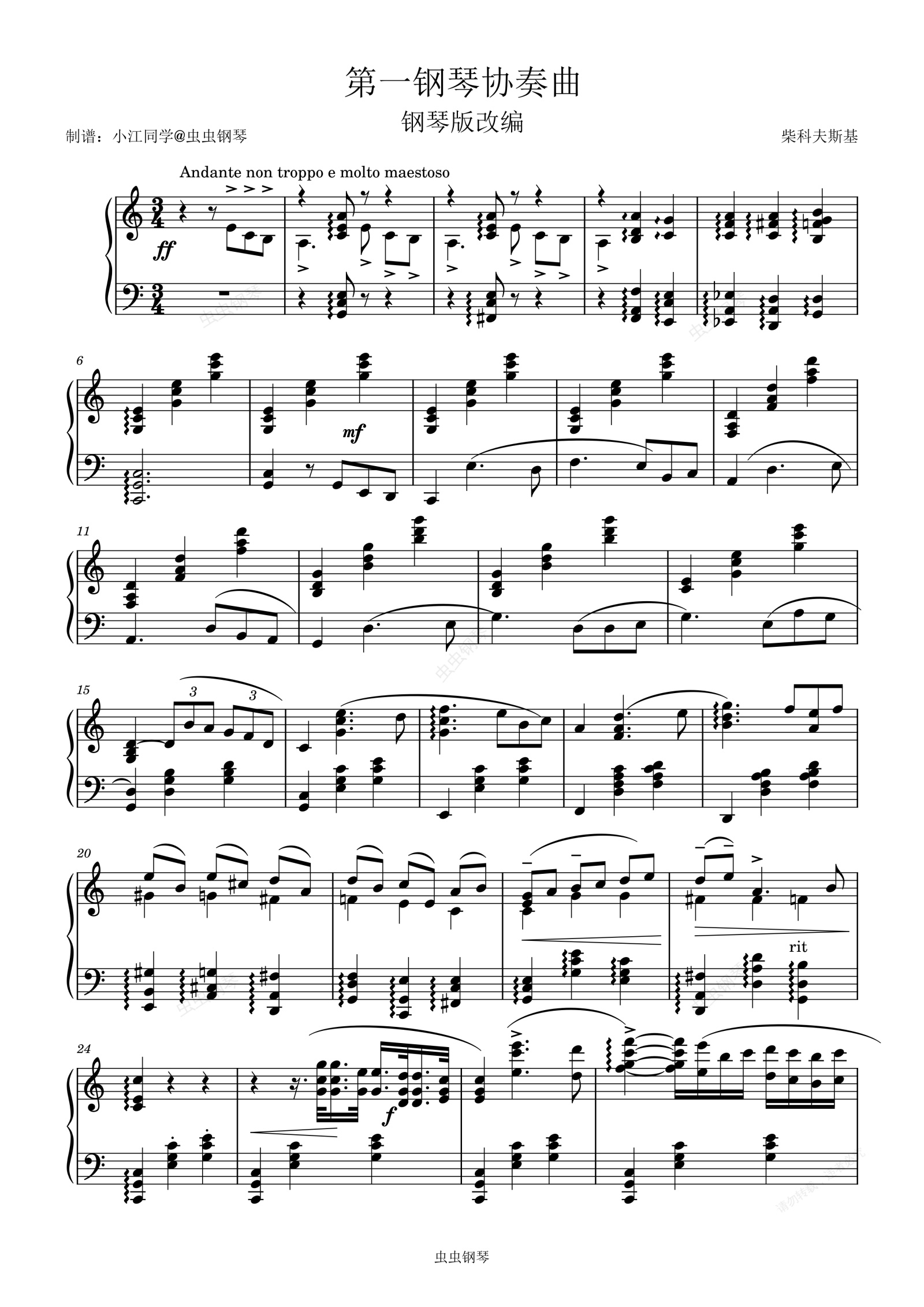 钢琴谱:第一钢琴协奏曲 柴科夫斯基钢琴独奏版