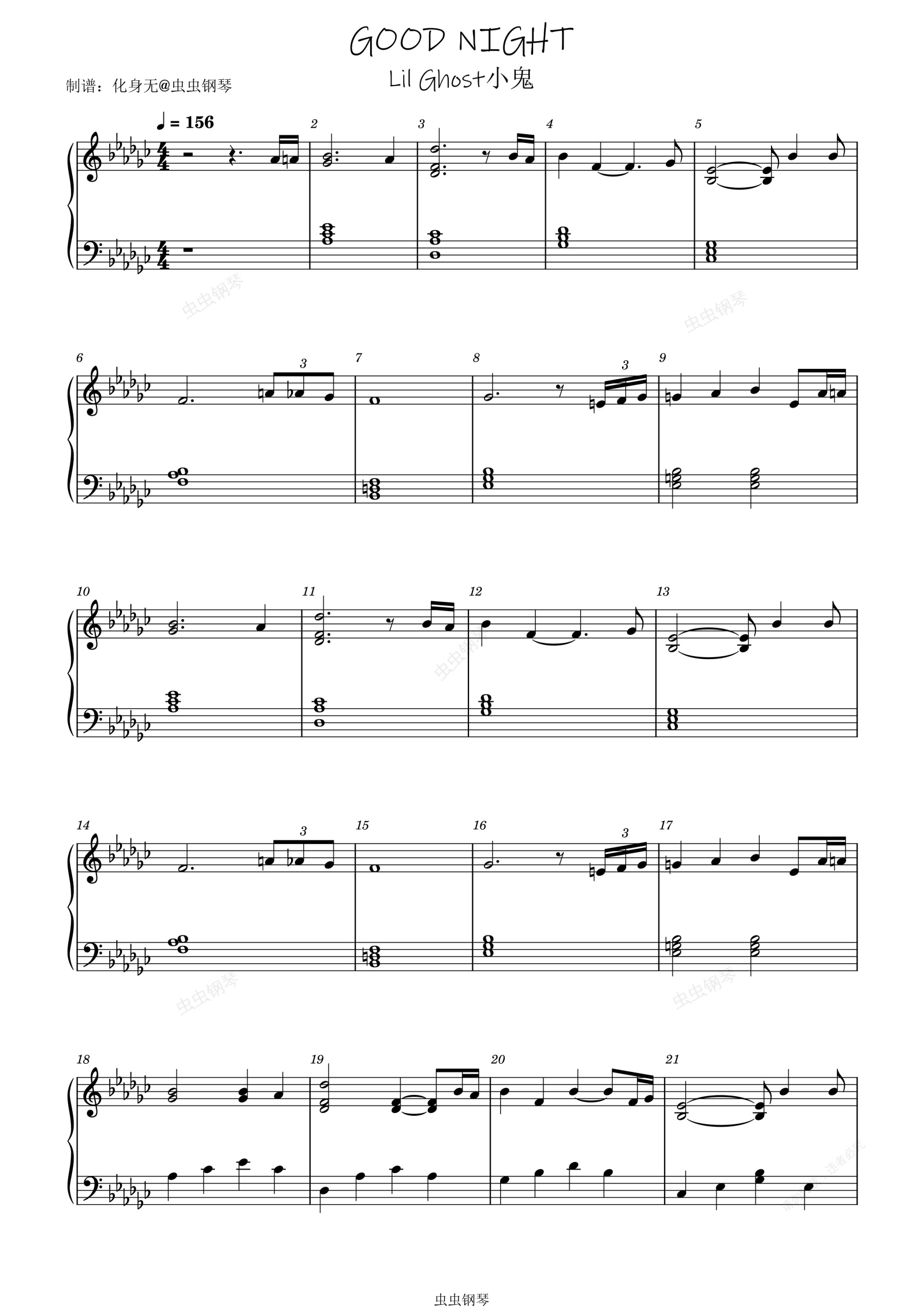 钢琴谱:GOOD NIGHT 原调独奏版