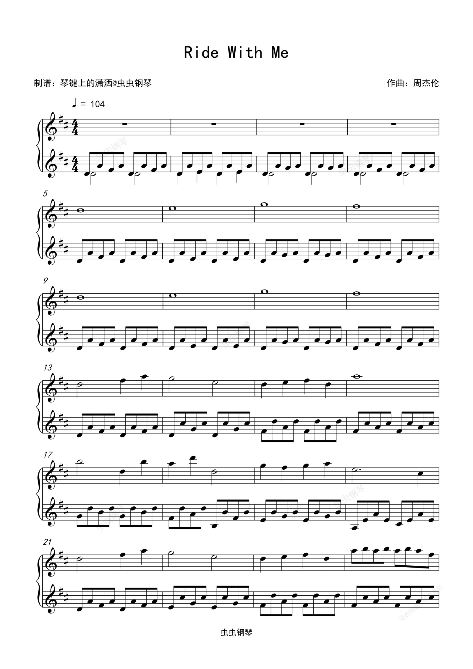 钢琴谱:《Ride WIth Me》-周杰伦-原版D调