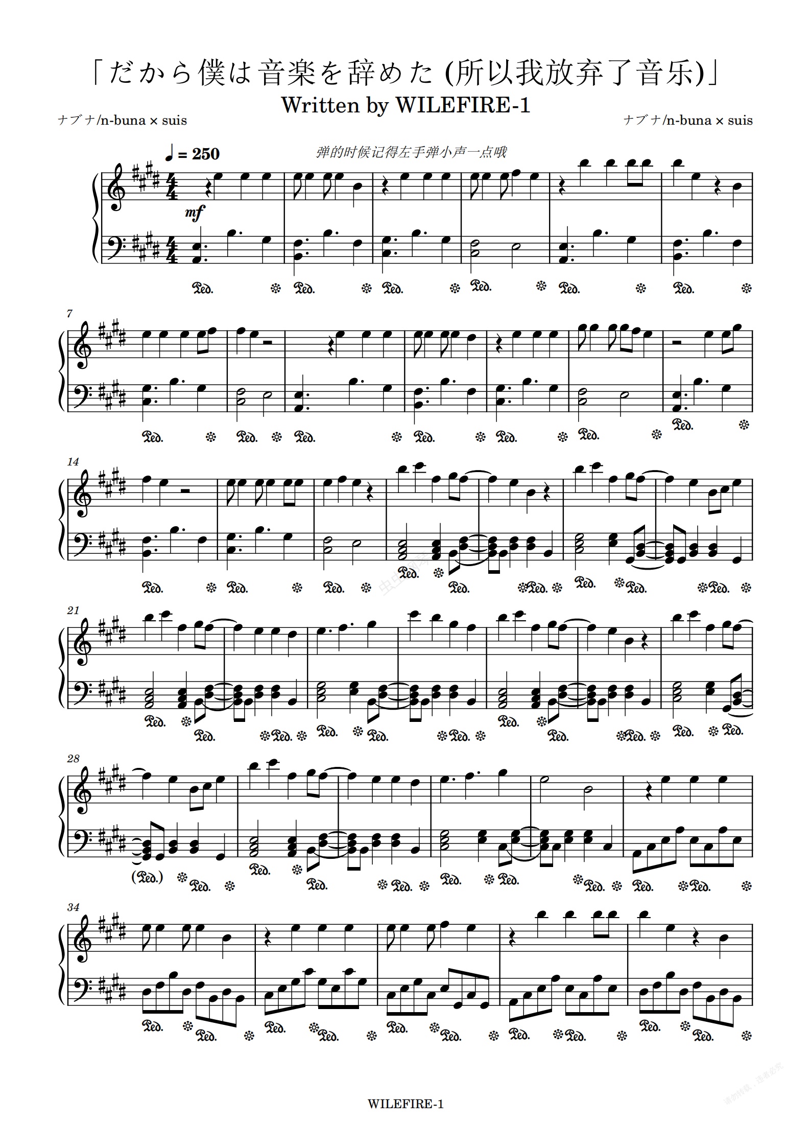 钢琴谱:「だから僕は音楽を辞めた (所以我放弃了音乐)」