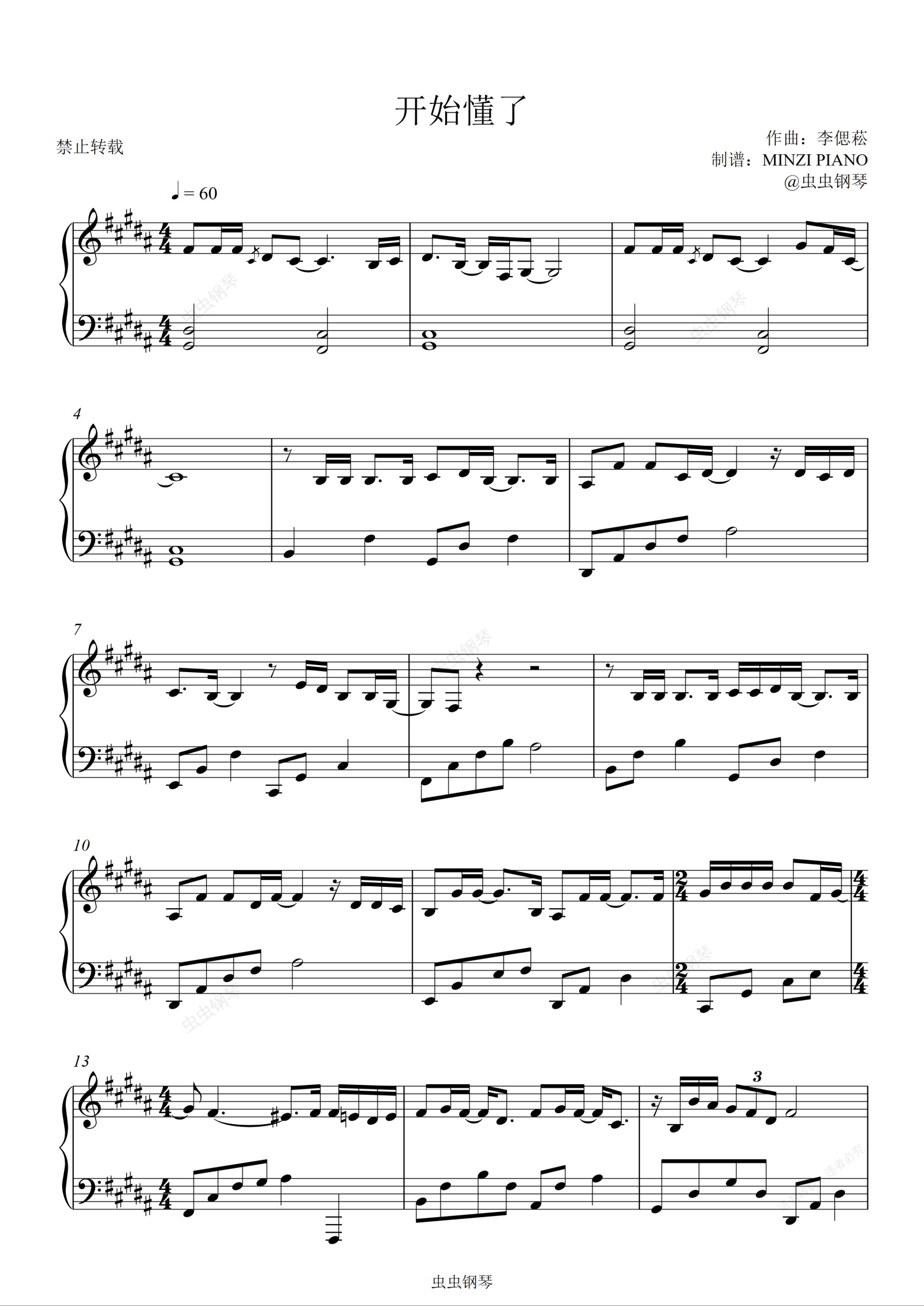 钢琴谱:孙燕姿《开始懂了》原调