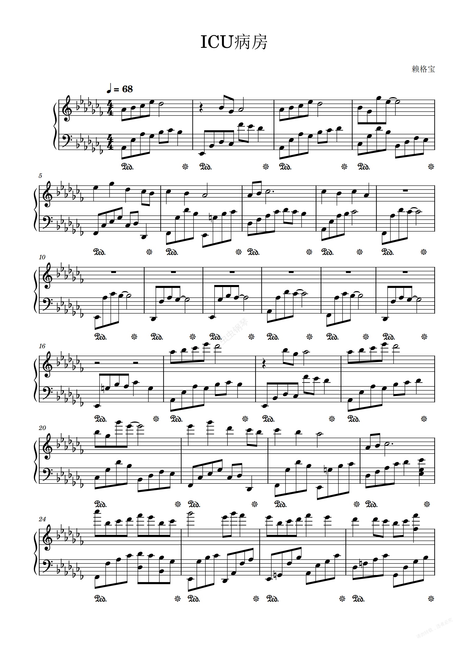 钢琴谱:icu病房